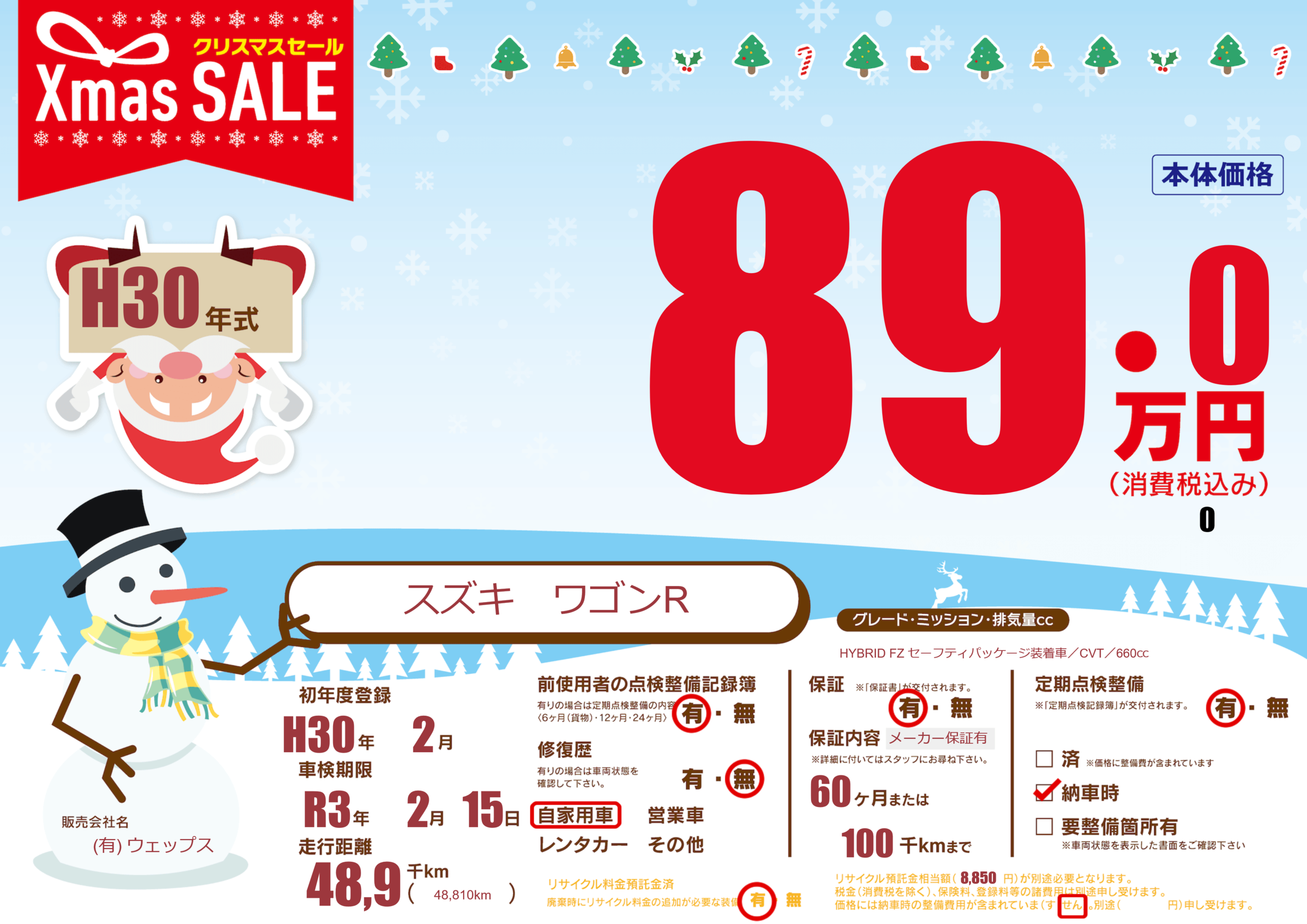 | 定期点検整備 | 定期点検整備あり 納車時あり | ||