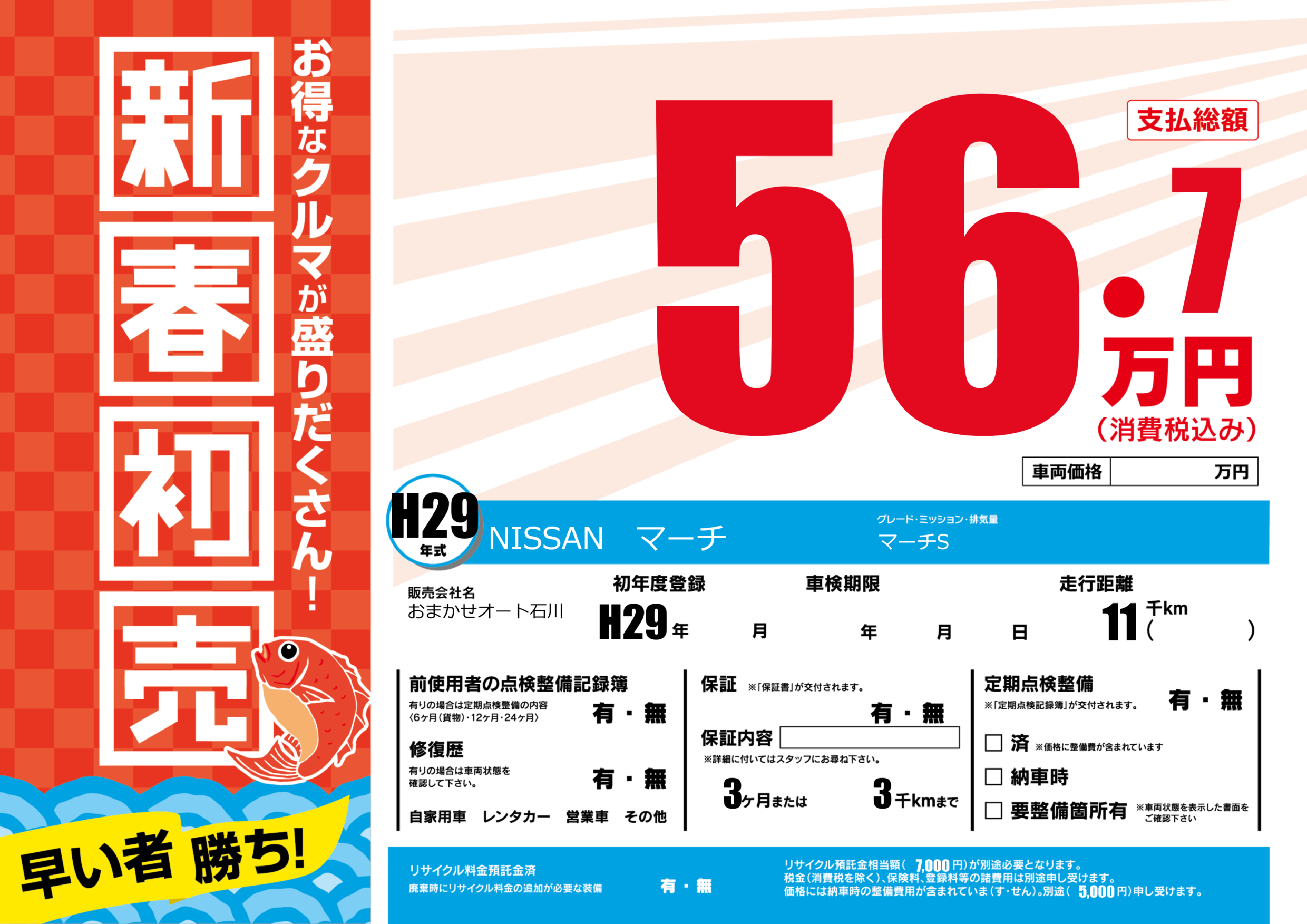 | 車名 | NISSAN マーチ | グレード ミッション 排気量 |
