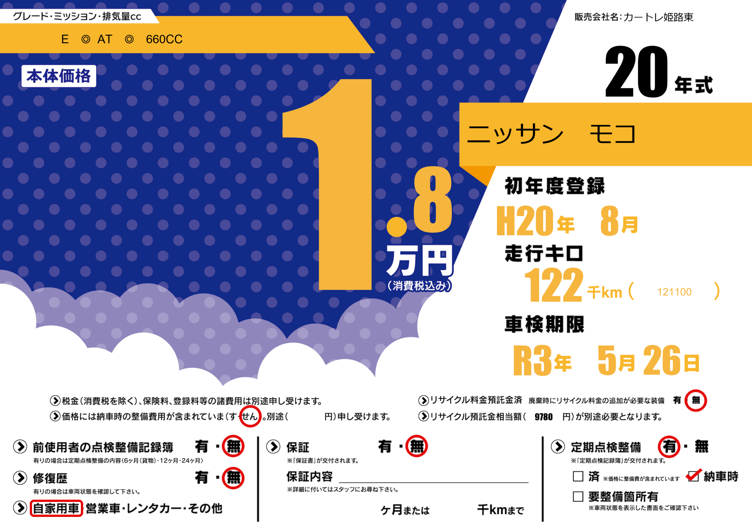 なし | 車検制限 | R3年5月26月 |