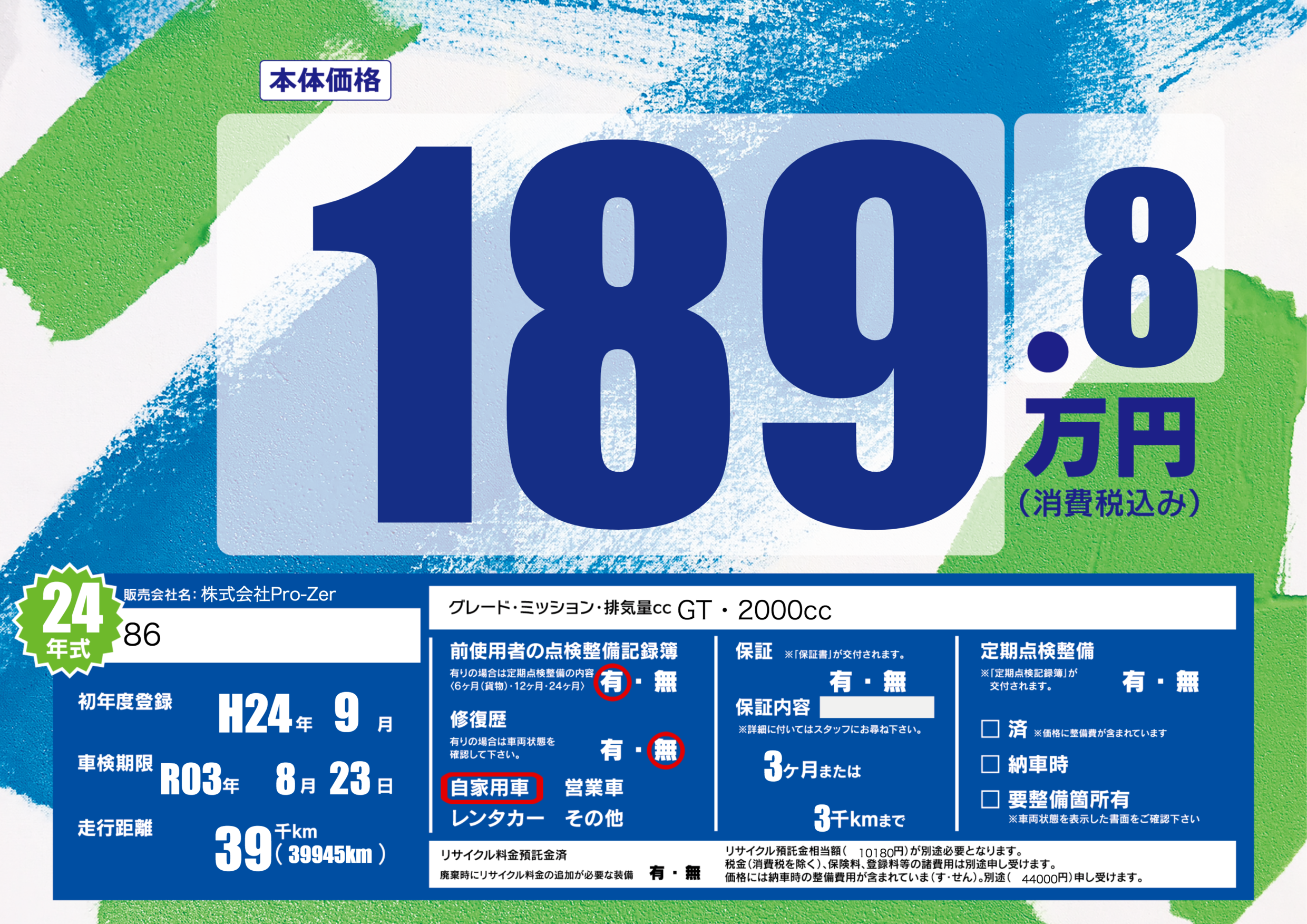 | 走行キロ | 3.9万km | 初年度登録 | H24年9月 |