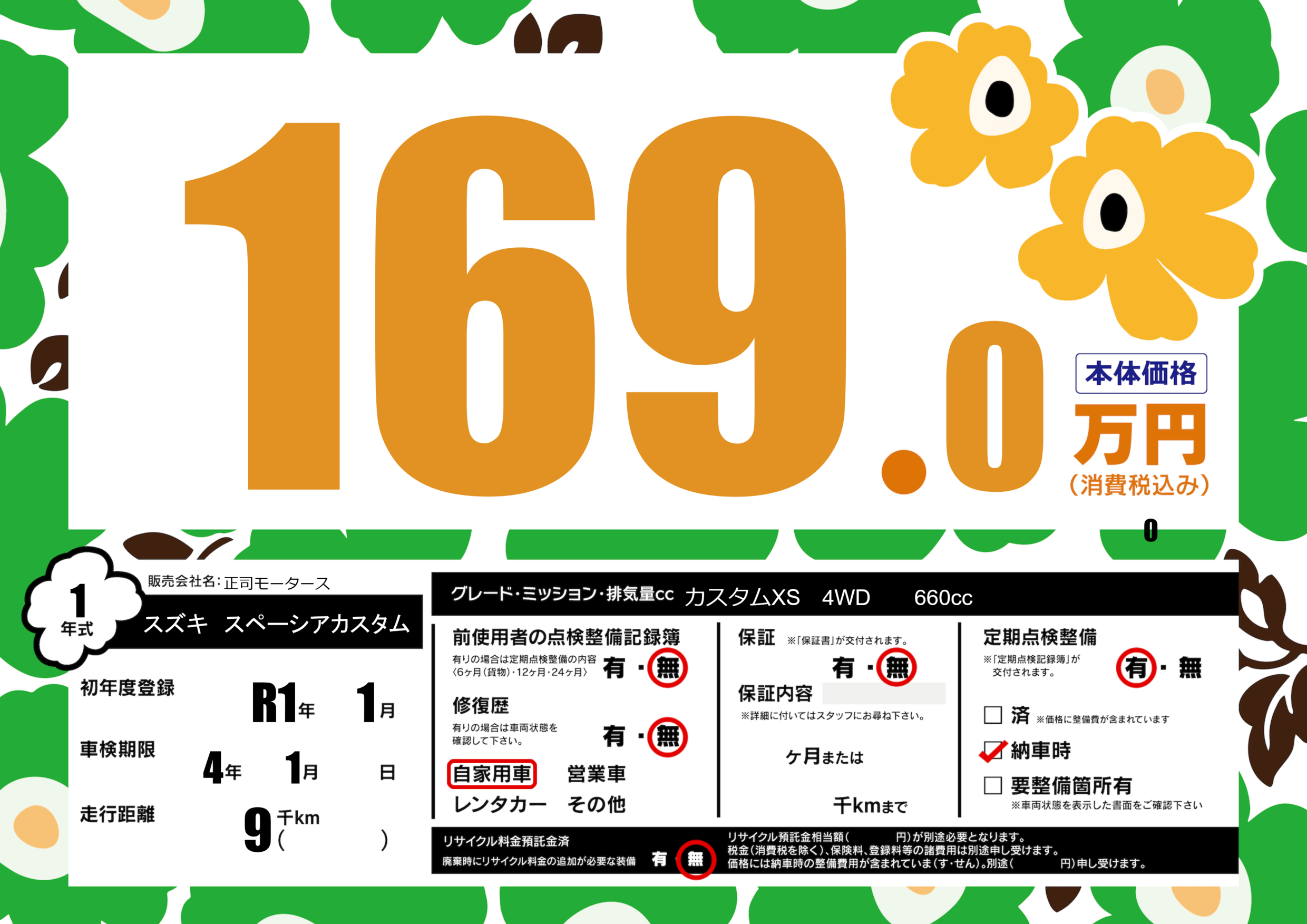 | 走行キロ | 0.9万km | 初年度登録 | R1年1月 |