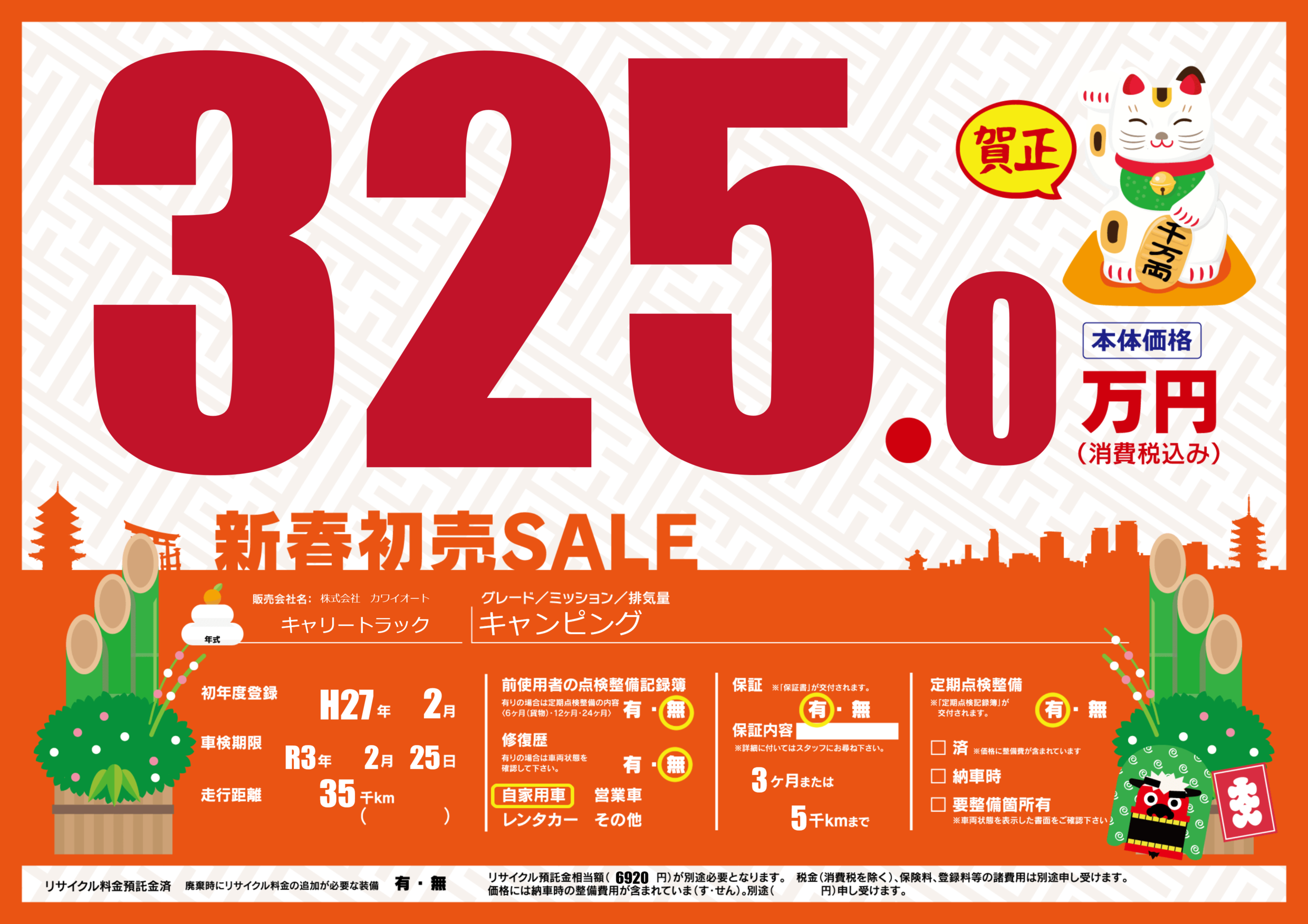 | 走行キロ | 3.5万km | 初年度登録 | H27年2月 |