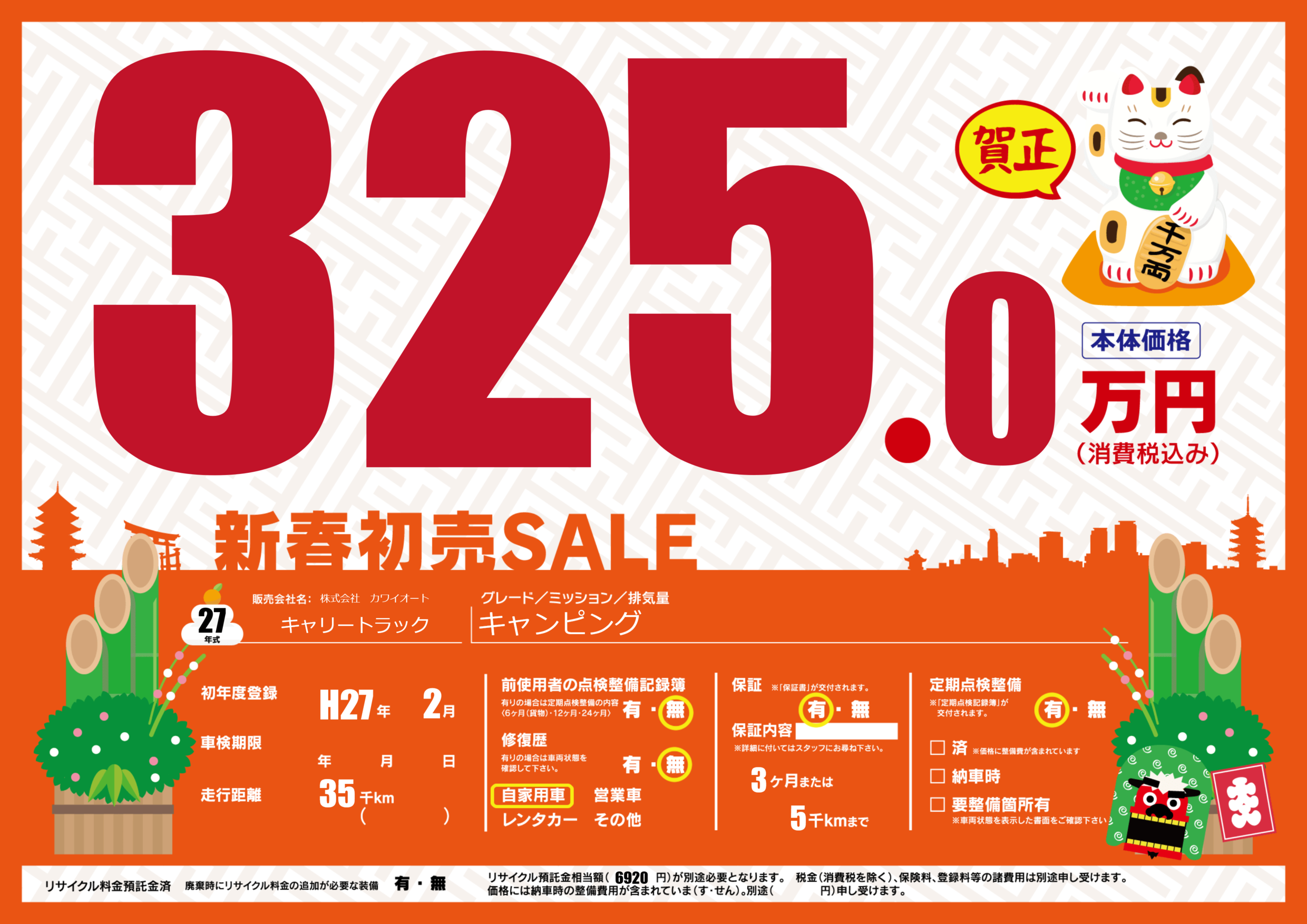 保証付き 保証内容(---) 3ヶ月または(5)千kmまで |