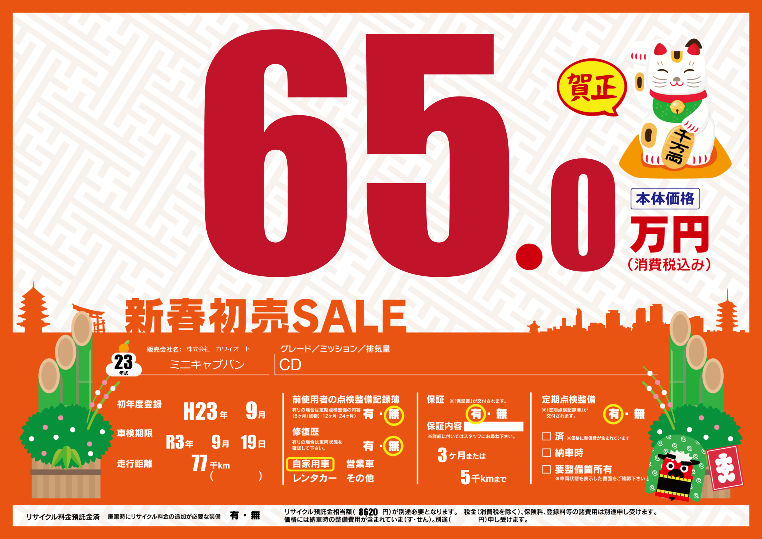 | 走行キロ | 7.7万km | 初年度登録 | H23年9月 |