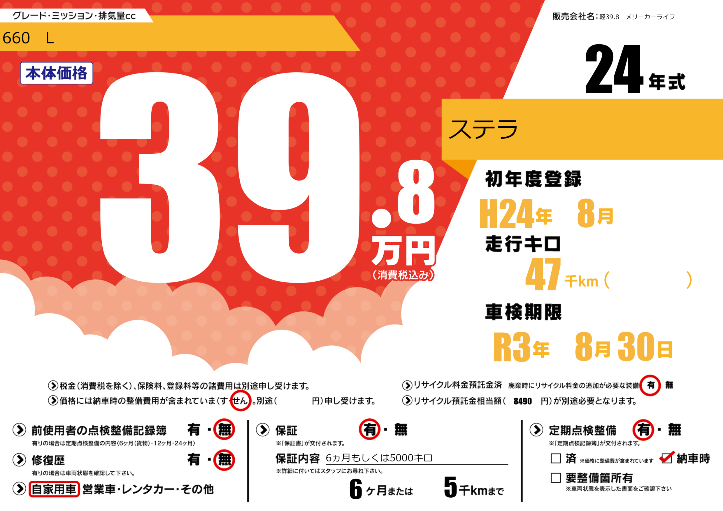 なし | 車検制限 | R3年8月30月 |