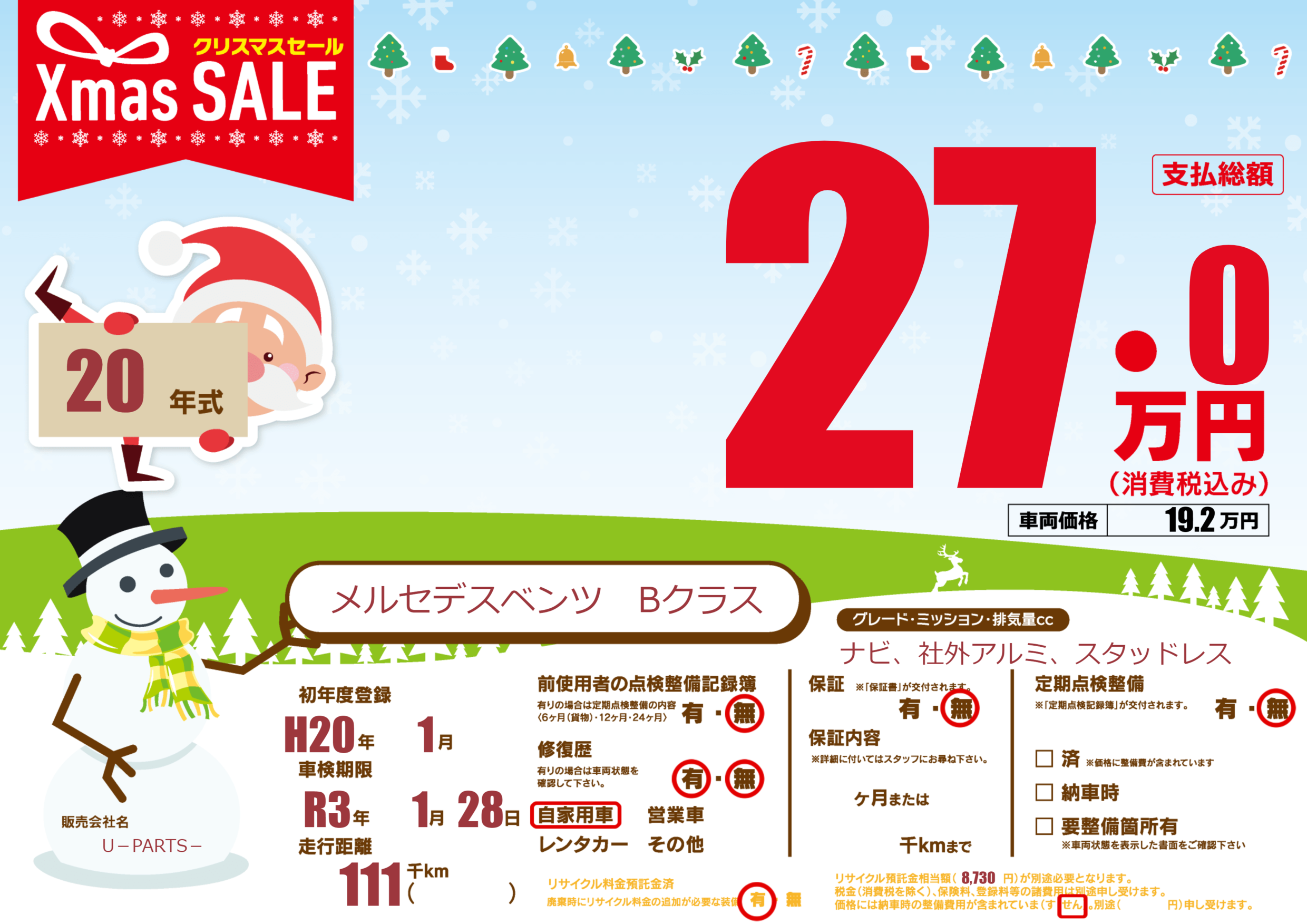 | 車名 | メルセデスベンツ Bクラス | グレード ミッション 排気量 |
