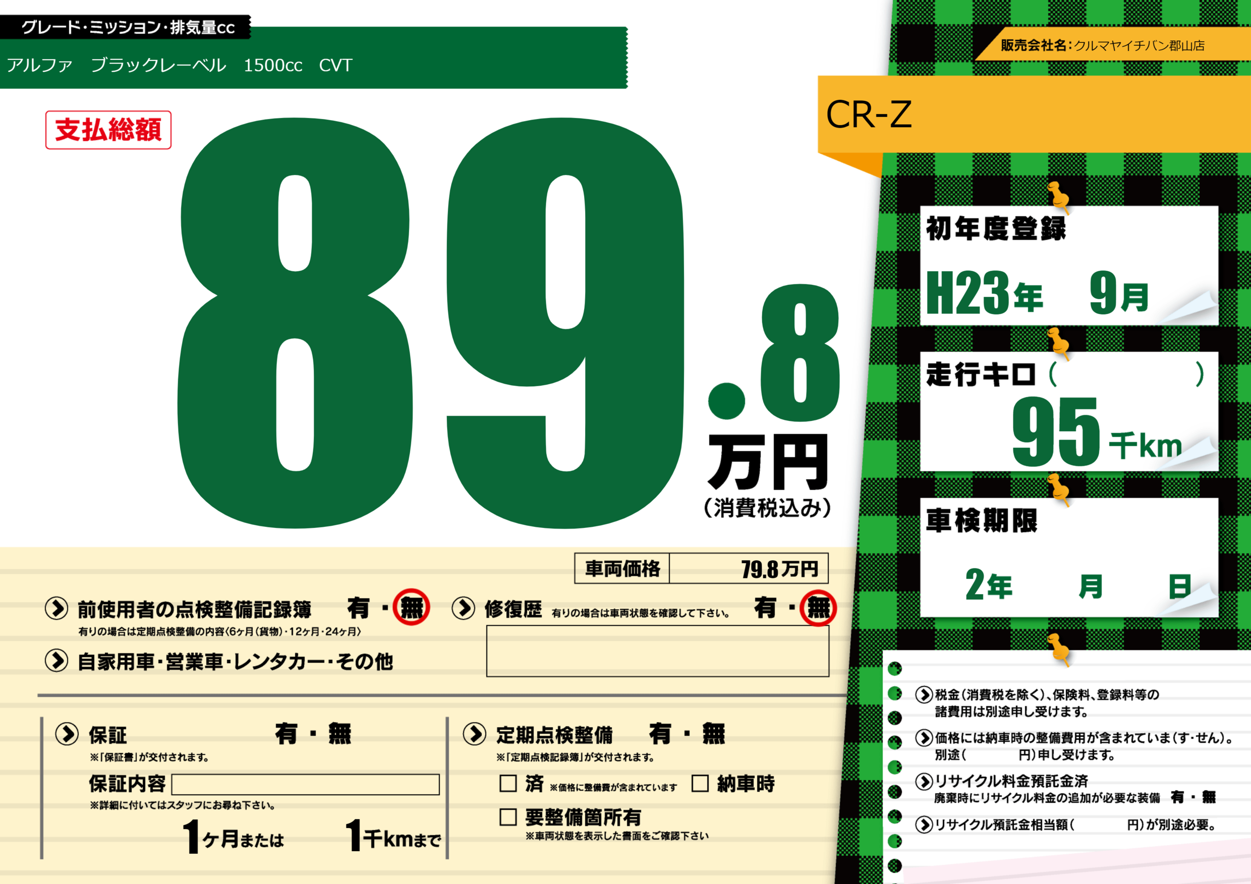 | 車名 | CR-Z | グレード ミッション 排気量 |