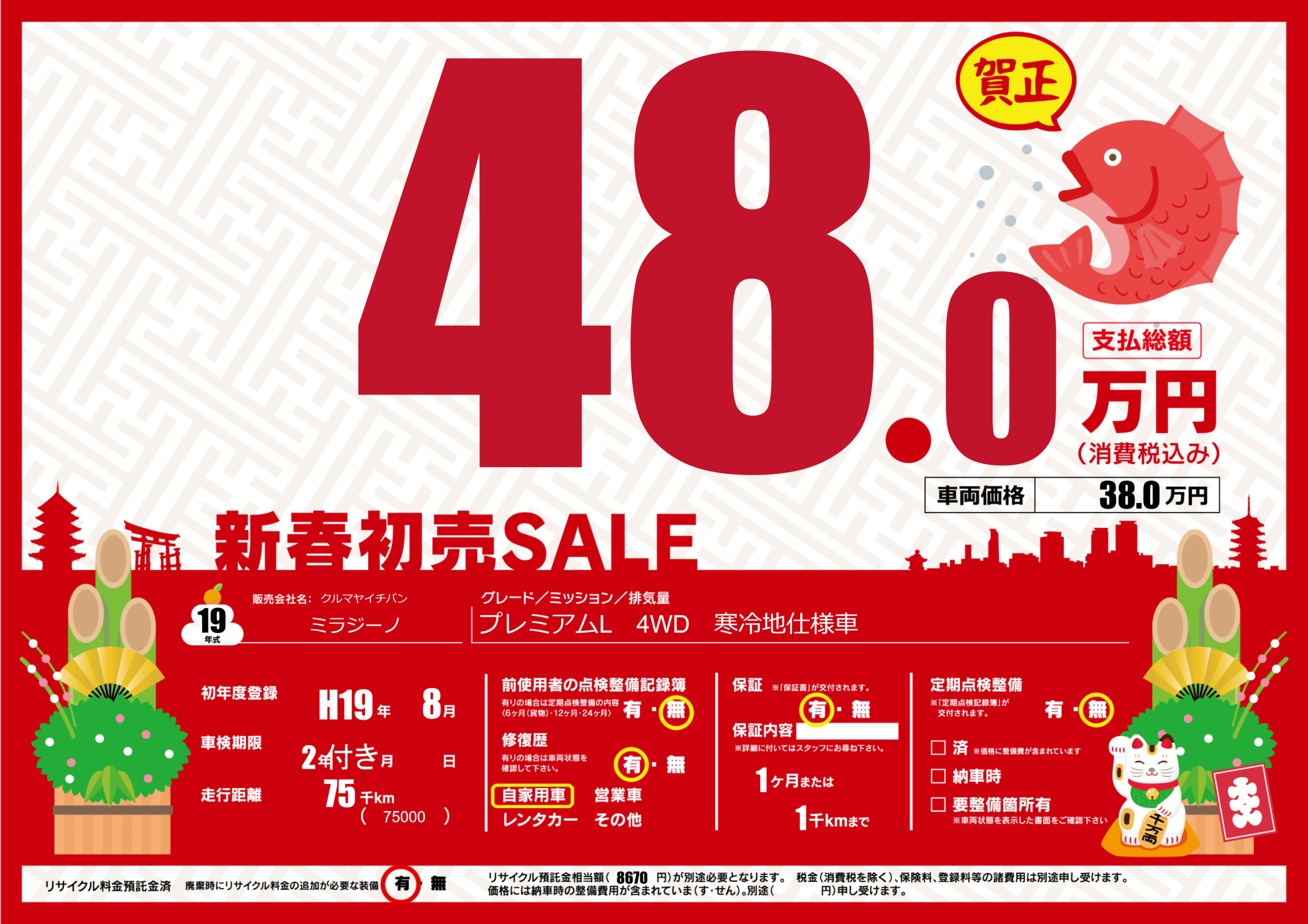 | 車名 | ミラジーノ | グレード ミッション 排気量 |