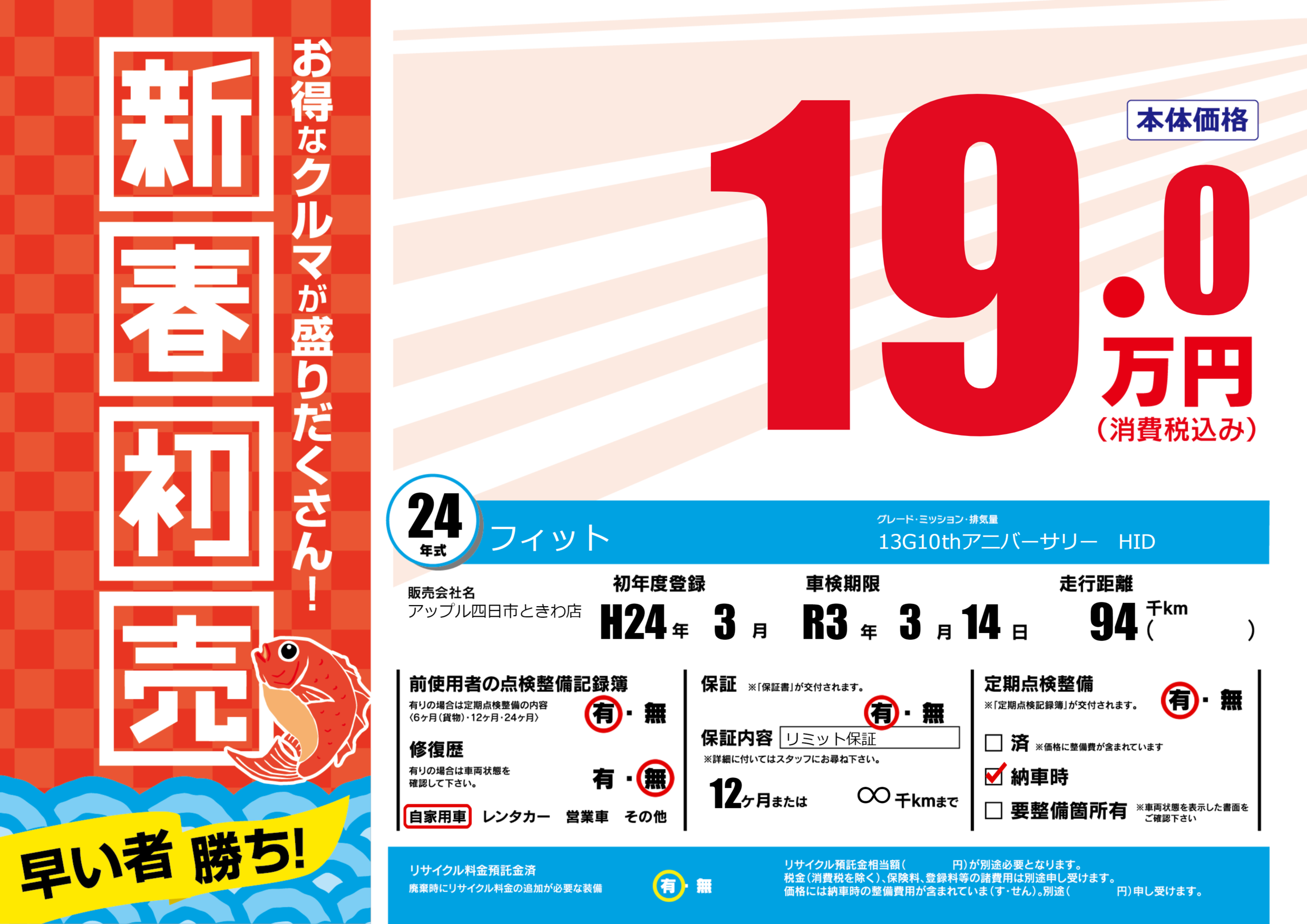 | 走行キロ | 9.4万km | 初年度登録 | H24年3月 |