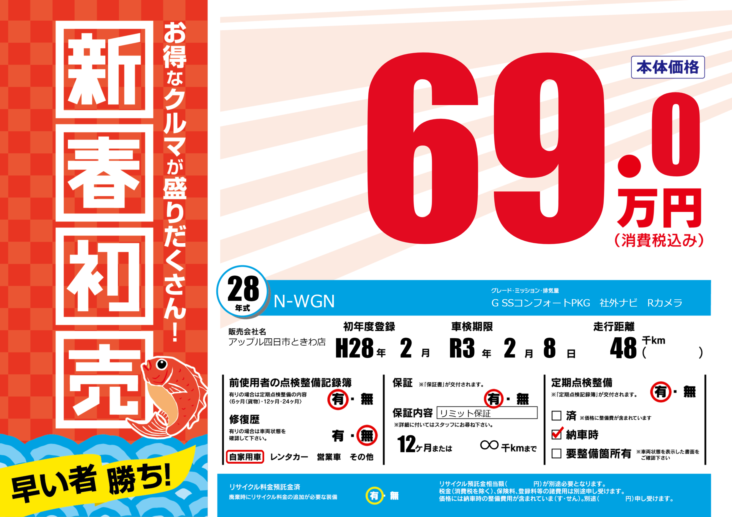 | 定期点検整備 | 定期点検整備あり 納車時あり | ||
