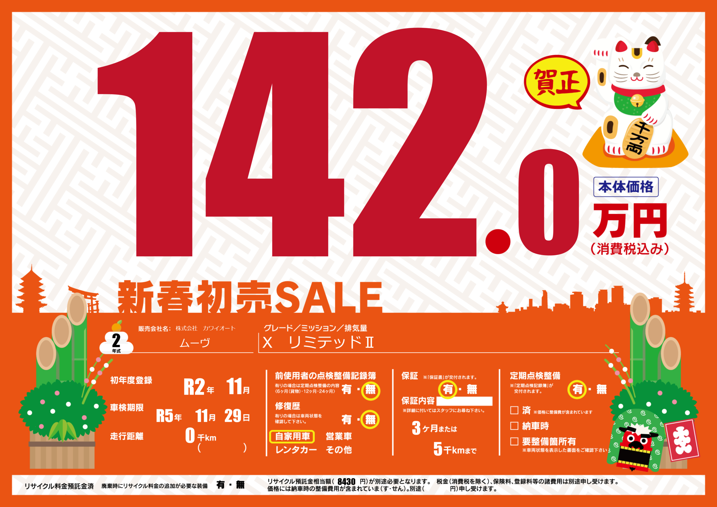 | 走行キロ | - | 初年度登録 | R2年11月 |
