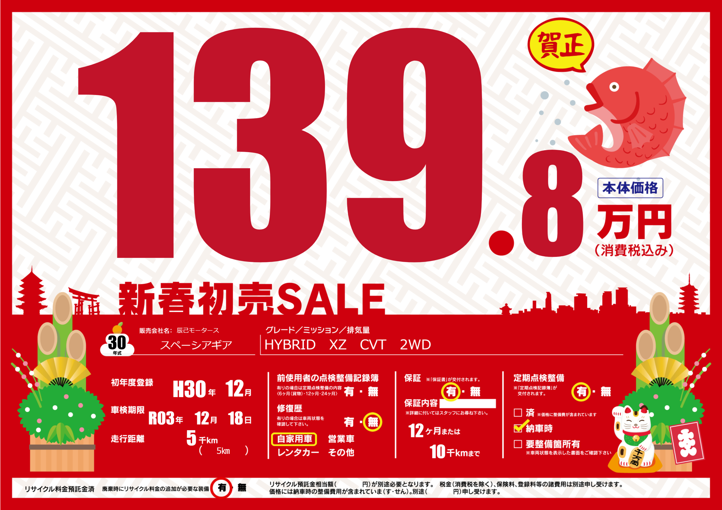 保証付き 保証内容(---) 12ヶ月または(10)千kmまで |