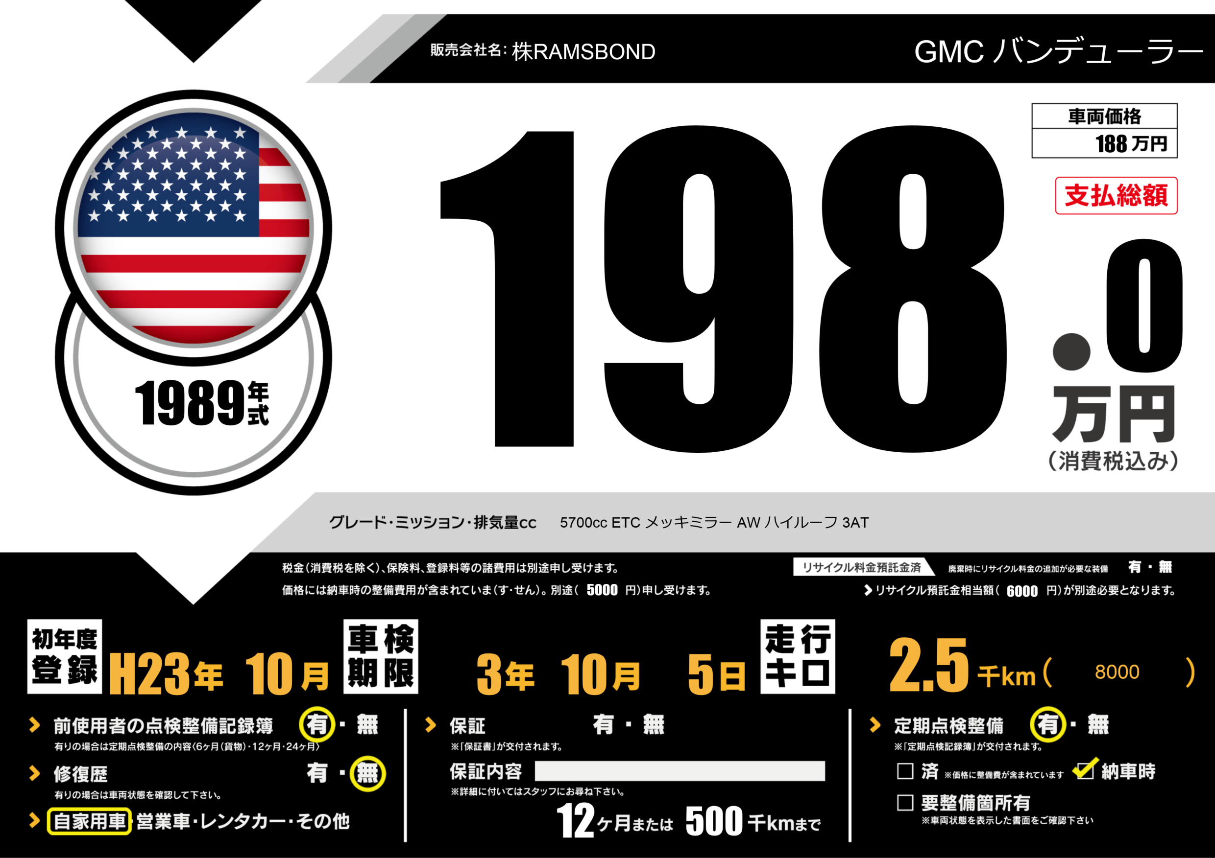 | 車名 | GMC バンデューラー | グレード ミッション 排気量 |
