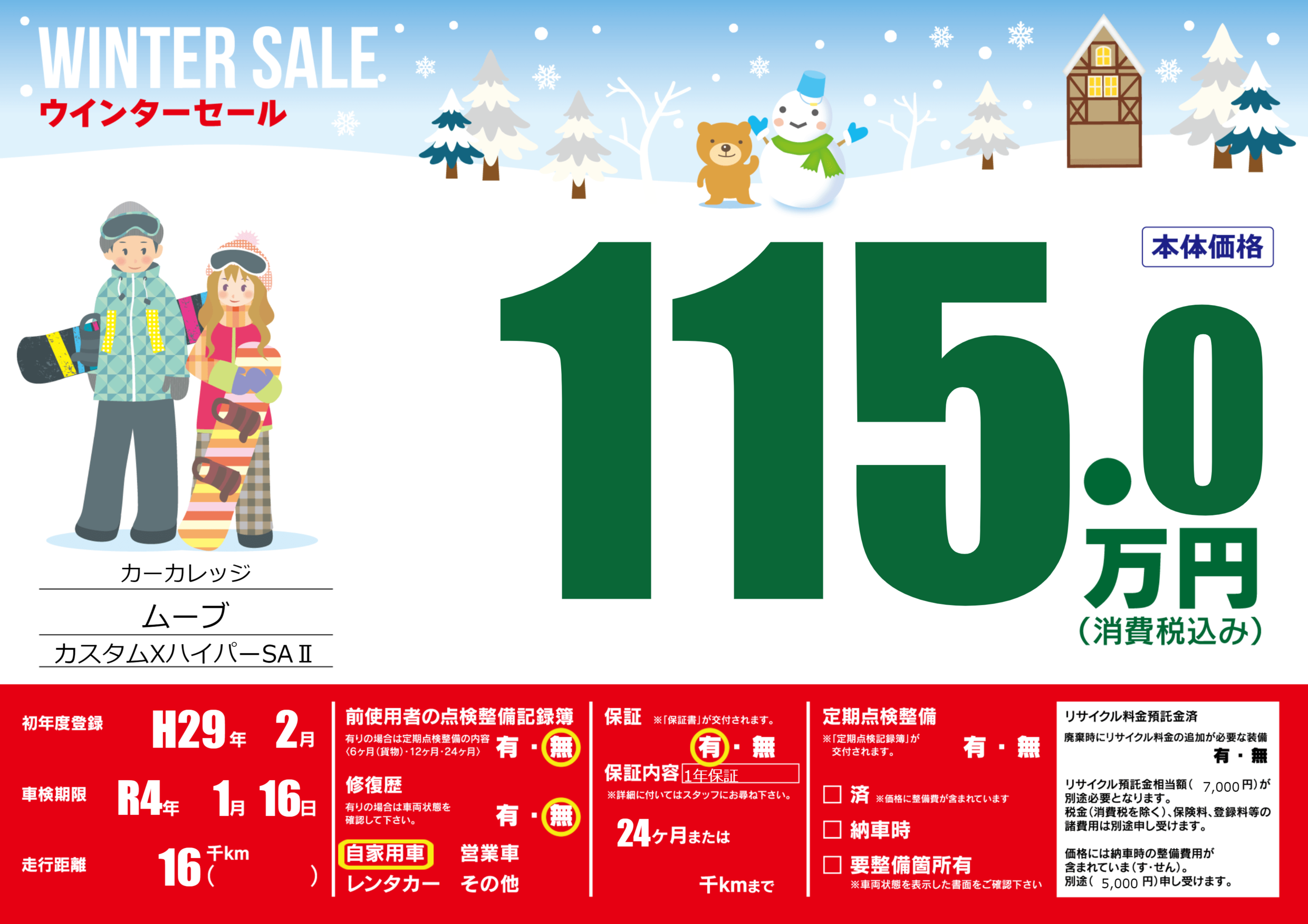 | 走行キロ | 1.6万km | 初年度登録 | H29年2月 |