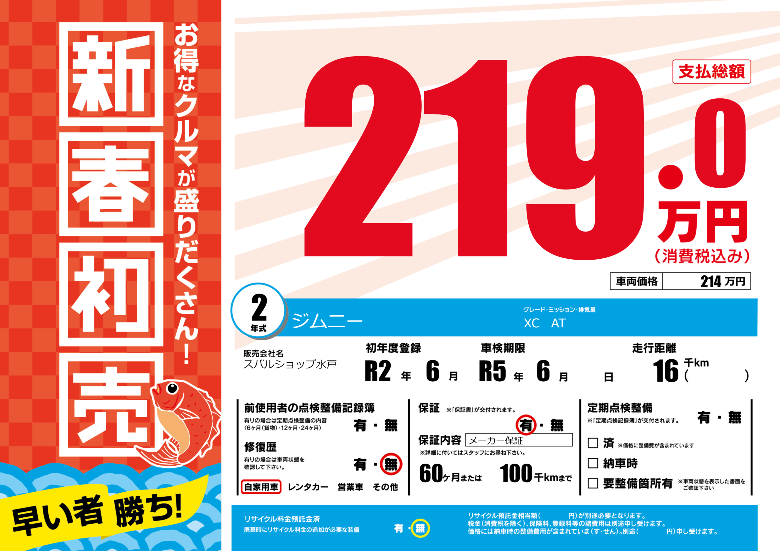 | 車名 | ジムニー | グレード ミッション 排気量 |