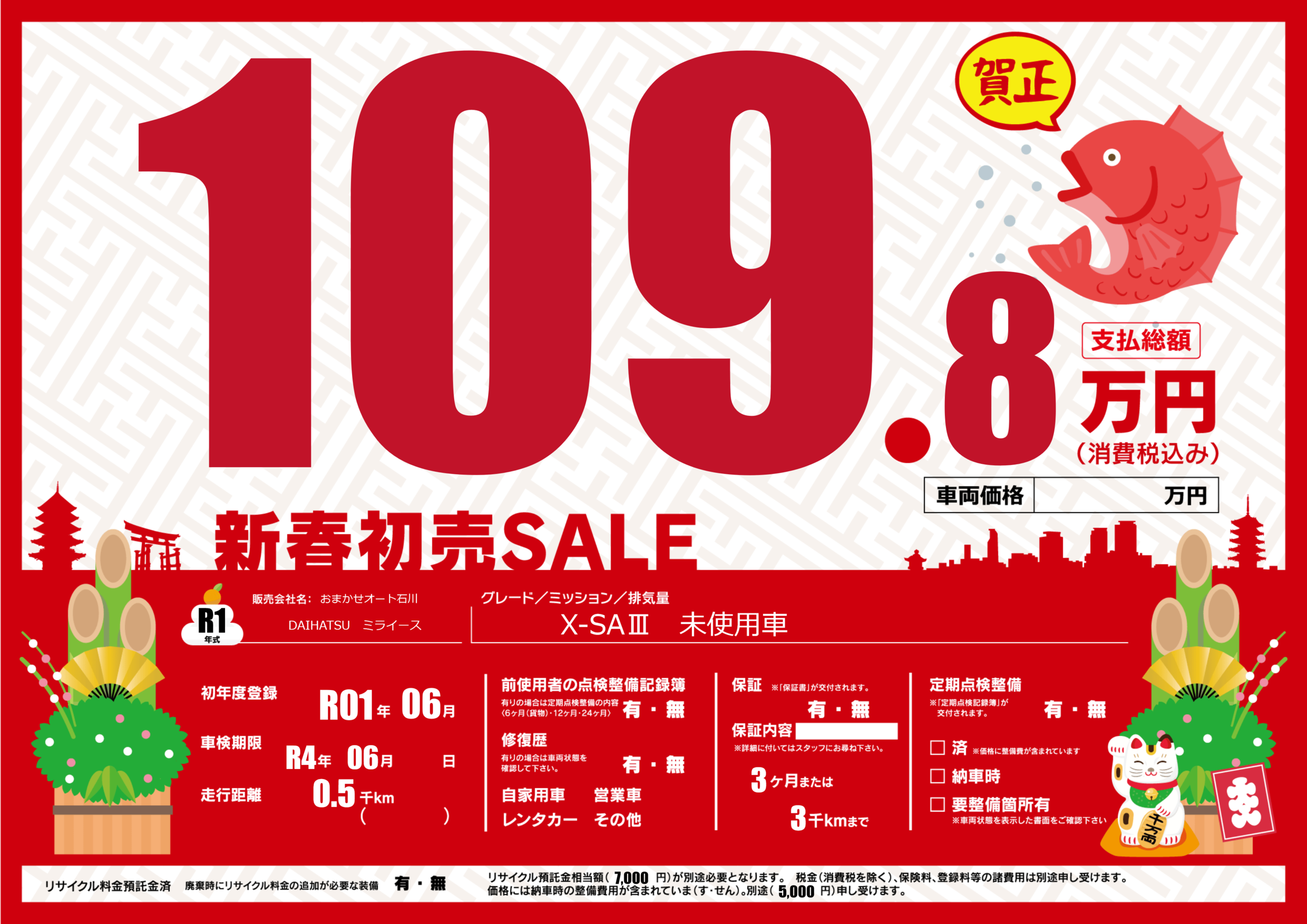 なし | リサイクル預託金相当額 | ( 1円)が別途必要 |