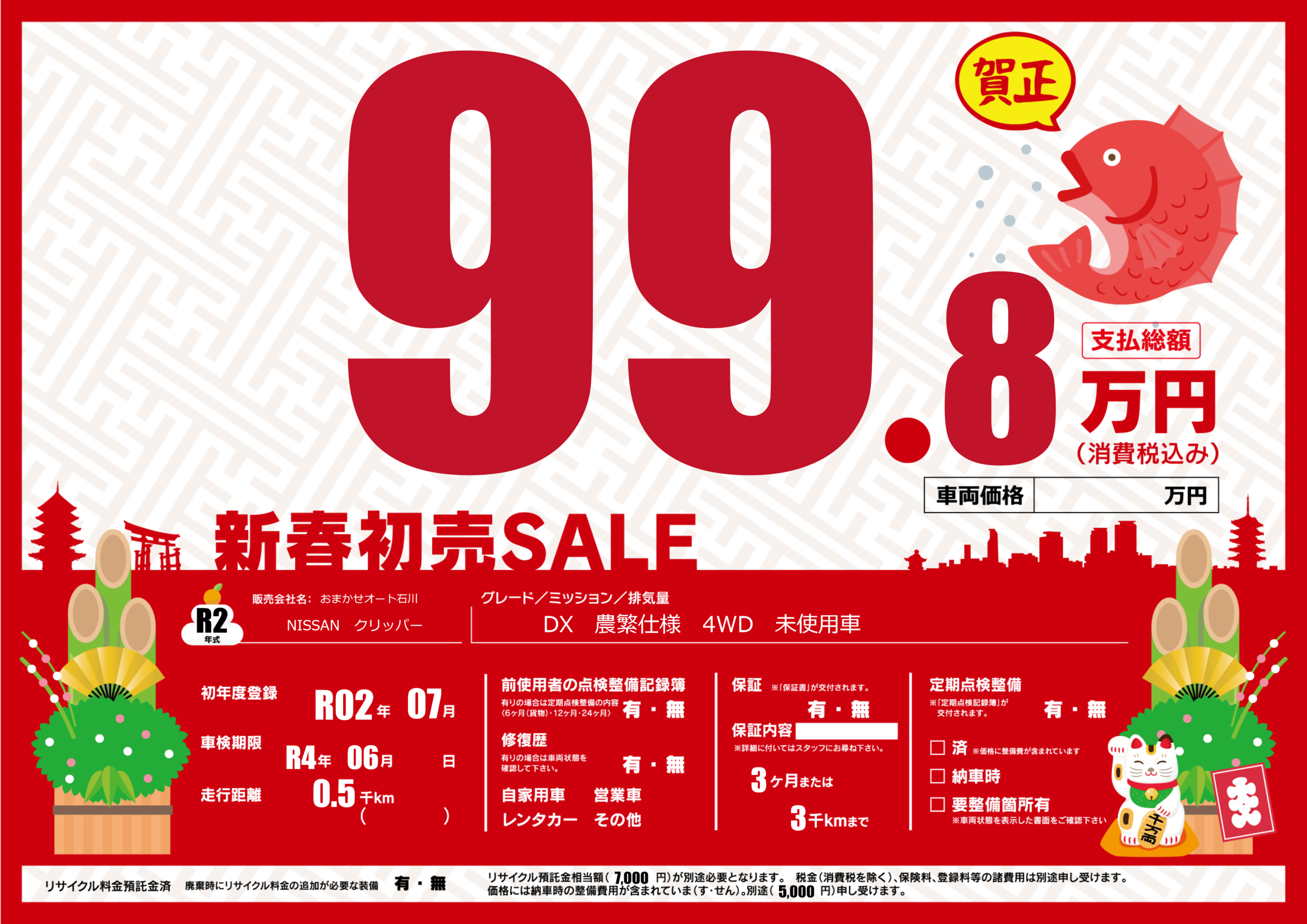 | 車名 | NISSAN クリッパー | グレード ミッション 排気量 |