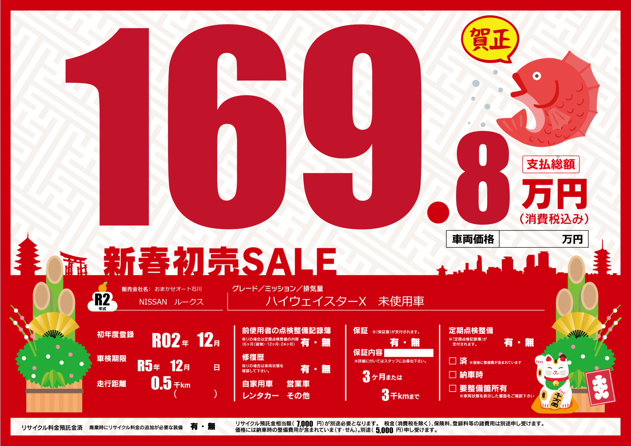 | 車検制限 | R5年 12月 - 日 | ||