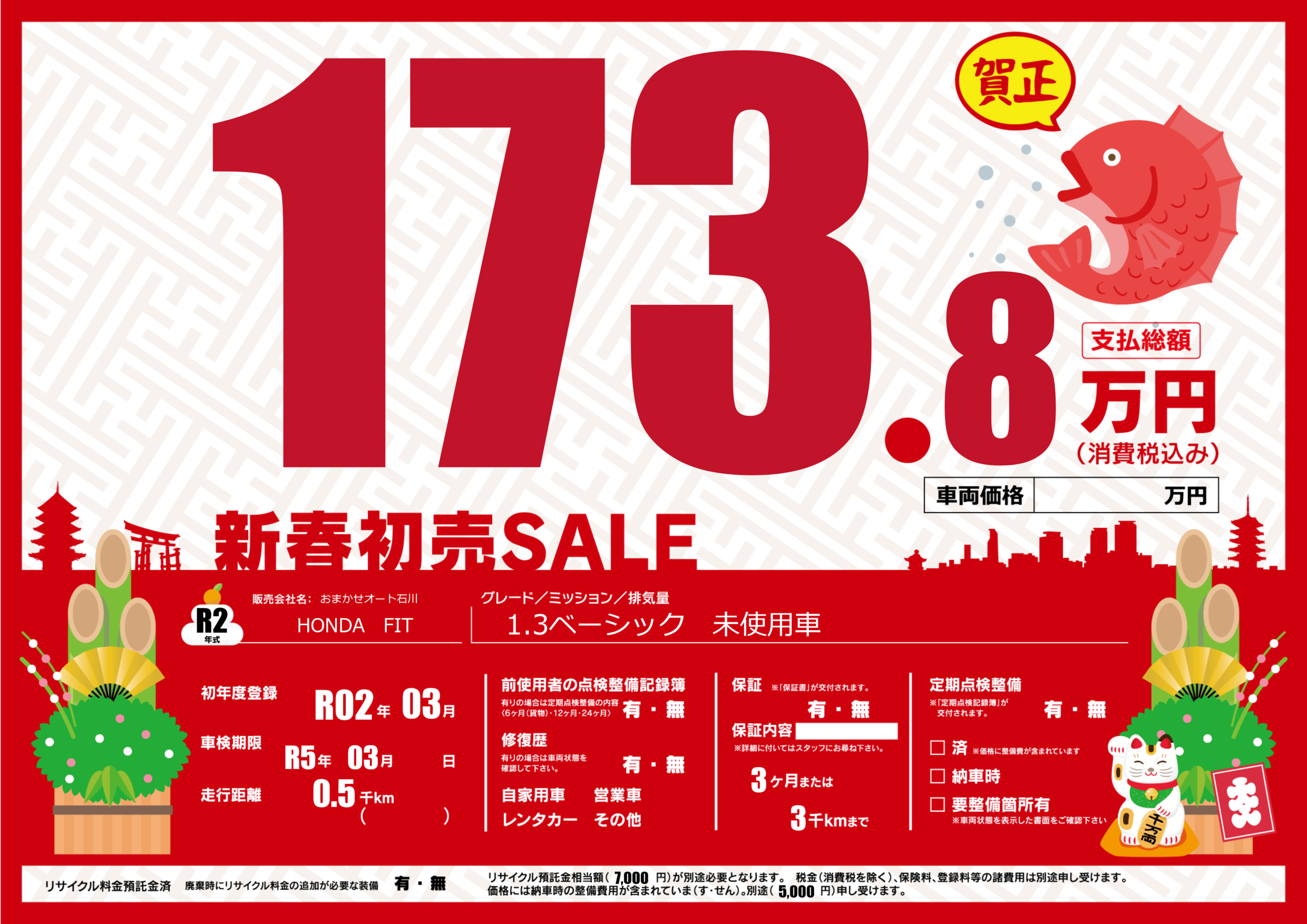 | 車名 | HONDA FIT | グレード ミッション 排気量 |