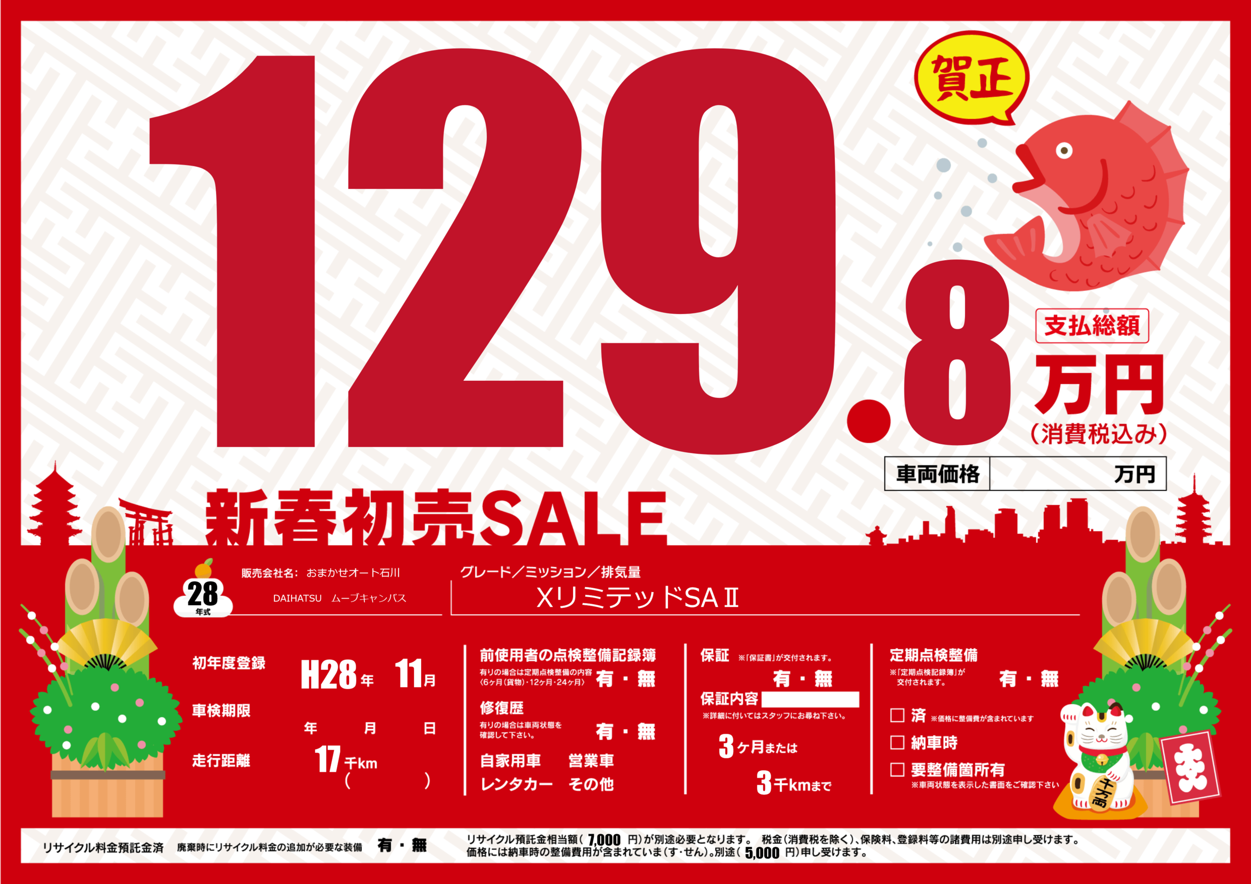 | 走行キロ | 1.7万km | 初年度登録 | H28年11月 |