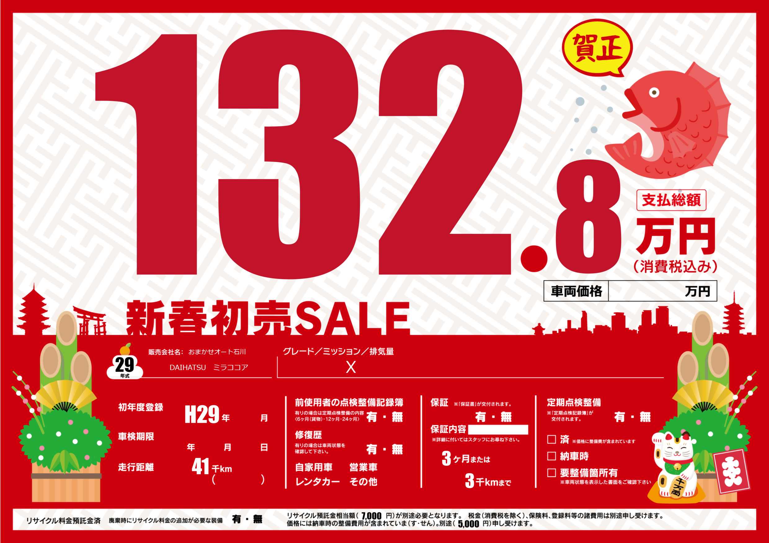 | 走行キロ | 4.1万km | 初年度登録 | H29年---月 |