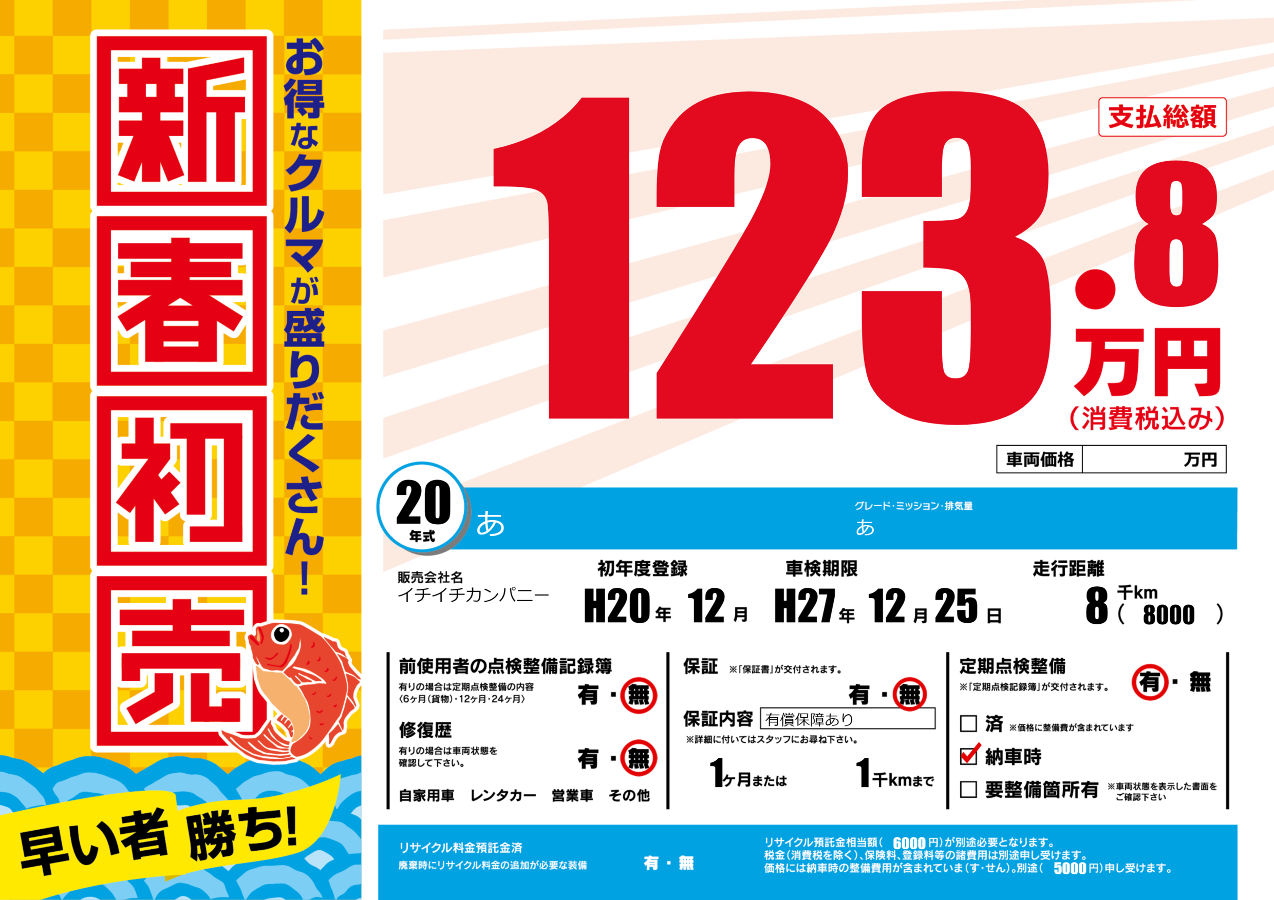 | 定期点検整備 | 定期点検整備あり 納車時あり | ||