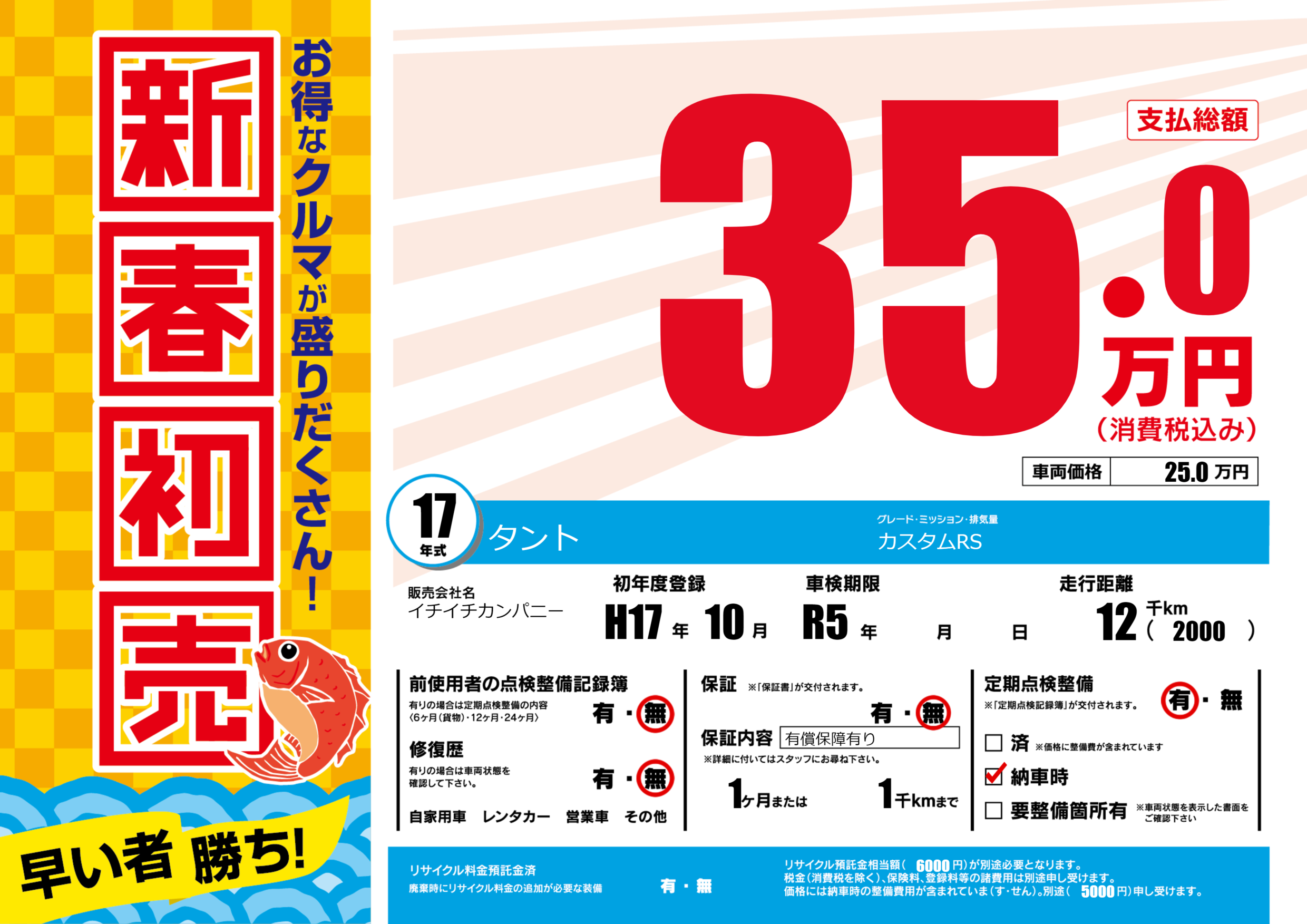| 定期点検整備 | 定期点検整備あり 納車時あり | ||