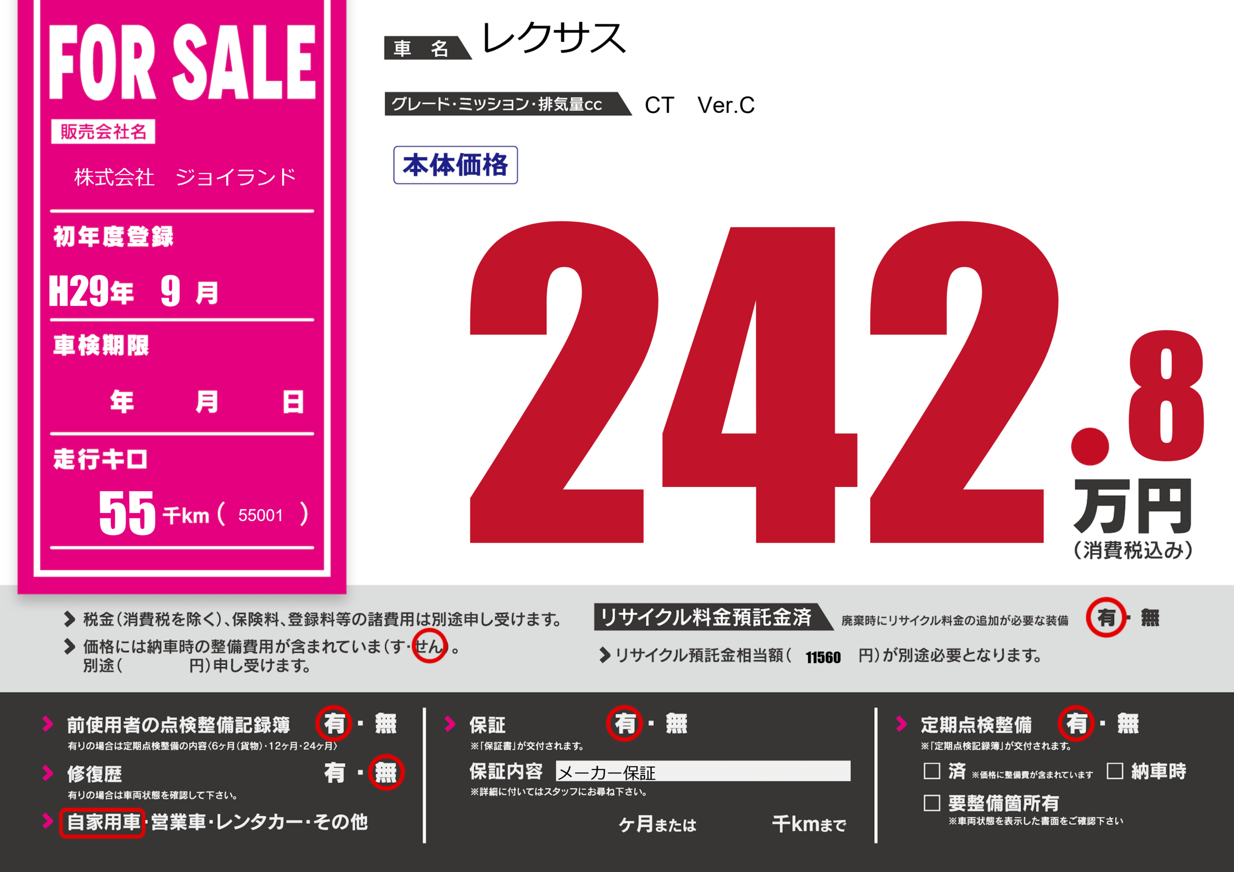 | 走行キロ | 5.5万km | 初年度登録 | H29年9月 |