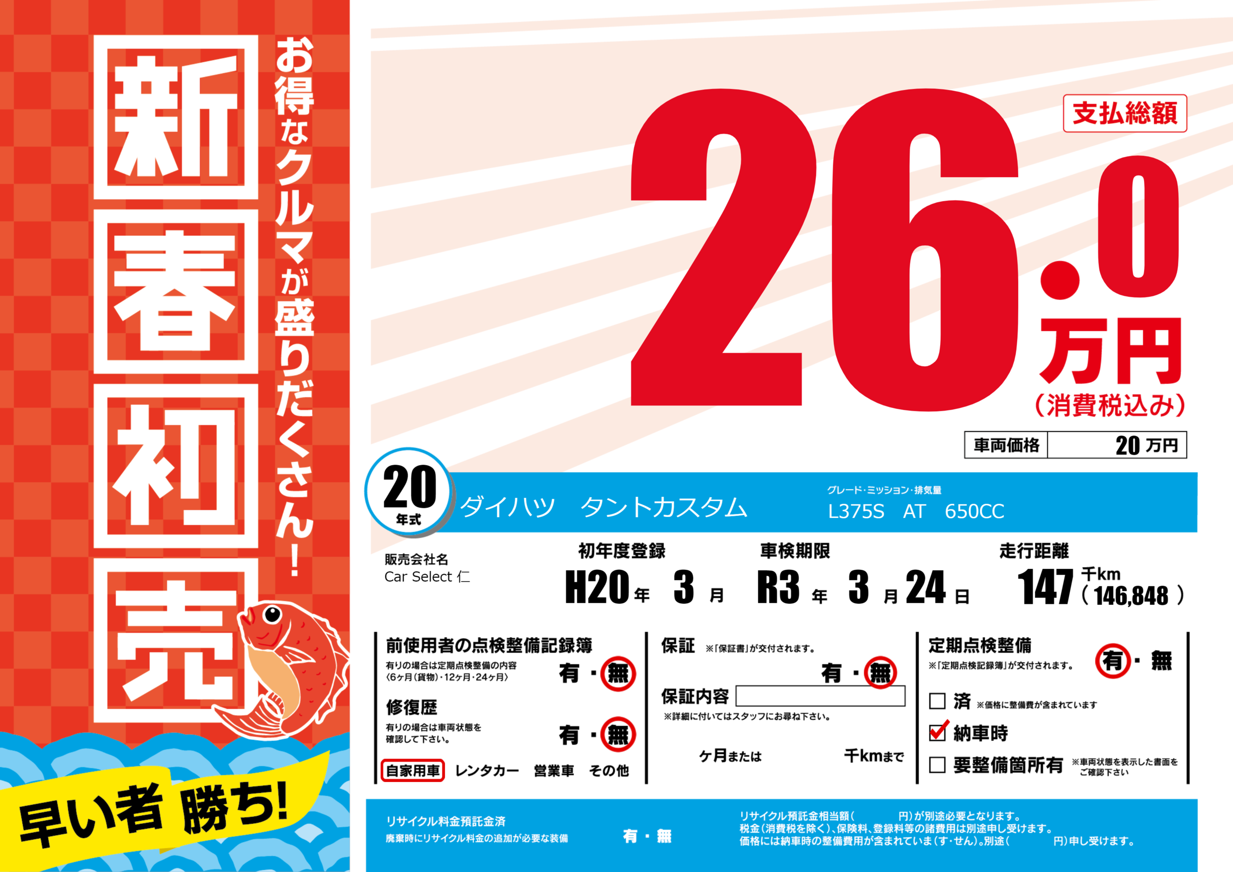 | 定期点検整備 | 定期点検整備あり 納車時あり | ||
