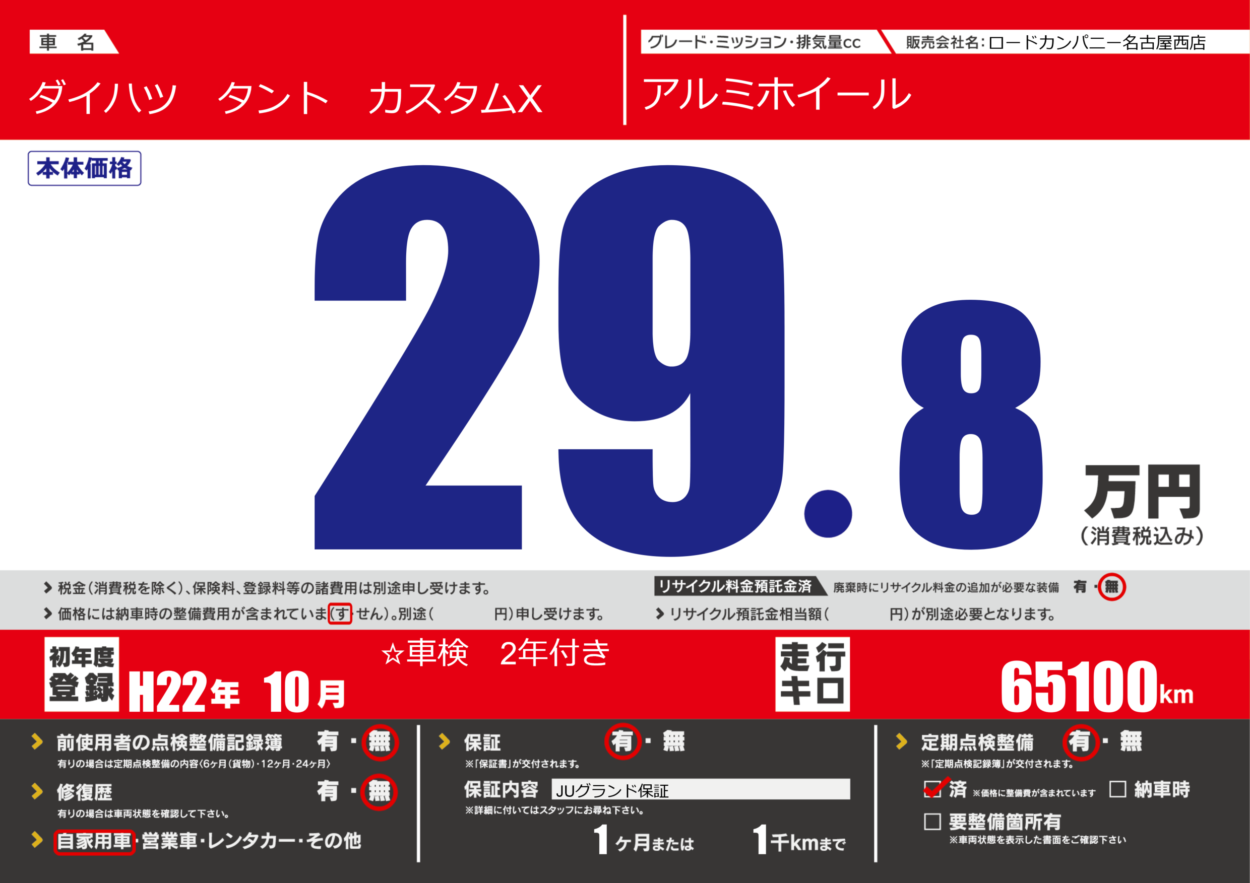 | 定期点検整備 | 定期点検整備あり 定期点検整備済み | ||