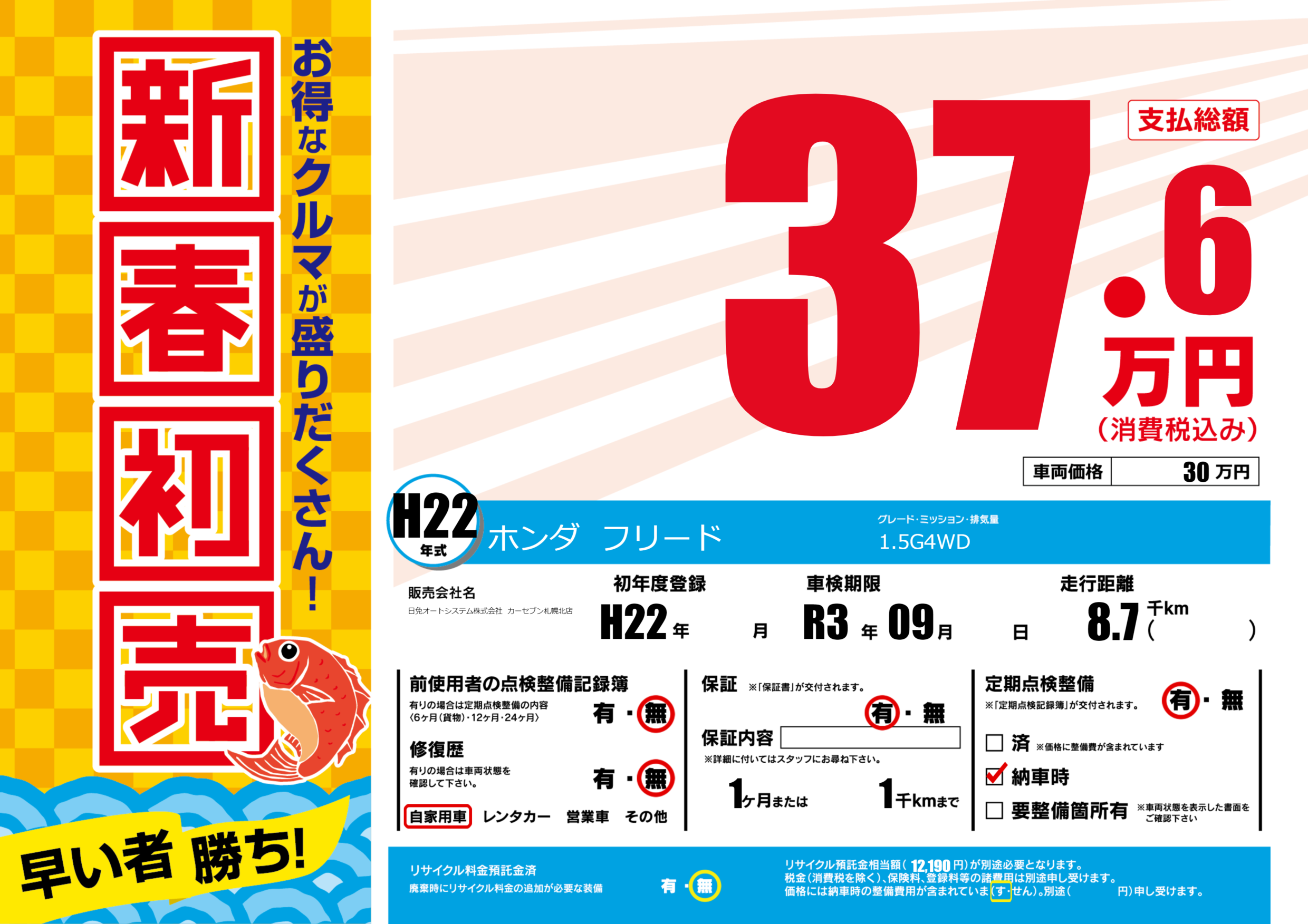 | 定期点検整備 | 定期点検整備あり 納車時あり | ||
