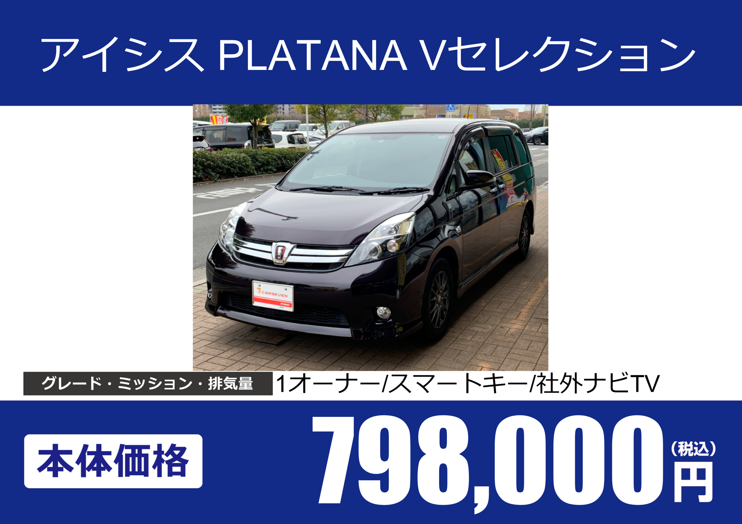 | 車名 | アイシス PLATANA Vセレクション | グレード ミッション 排気量 |
