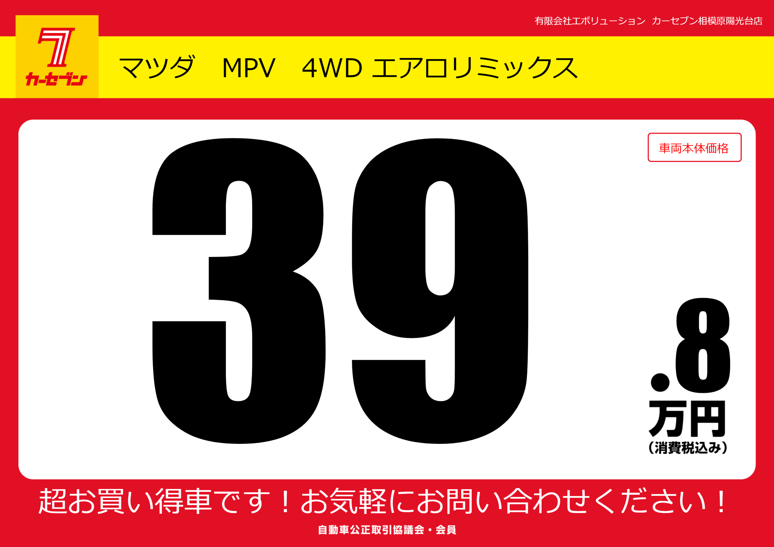| 車名 | マツダ MPV 4WD エアロリミックス | グレード ミッション 排気量 |
