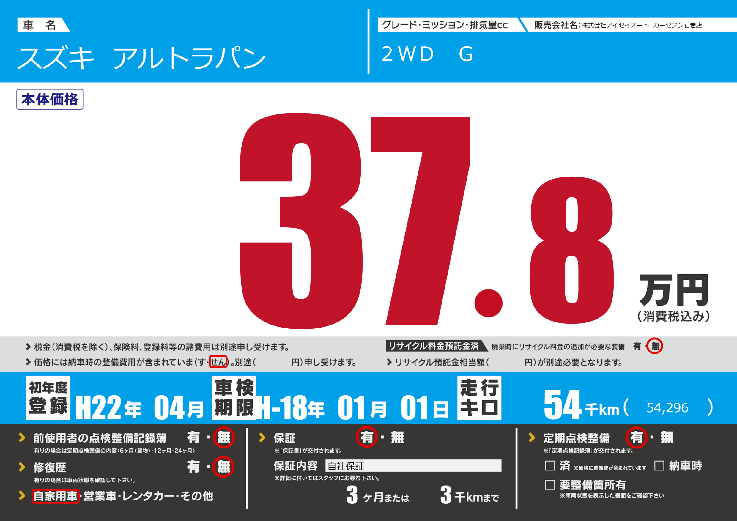 保証付き 保証内容(自社保証) 3ヶ月または3千km |