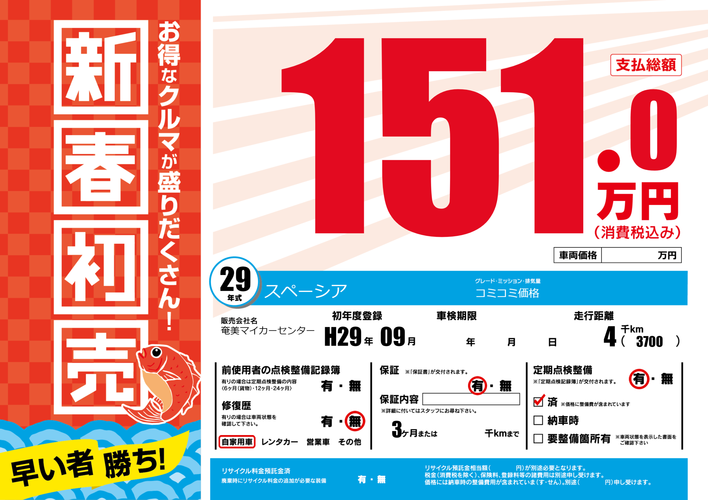 | 定期点検整備 | 定期点検整備あり 定期点検整備済み | ||