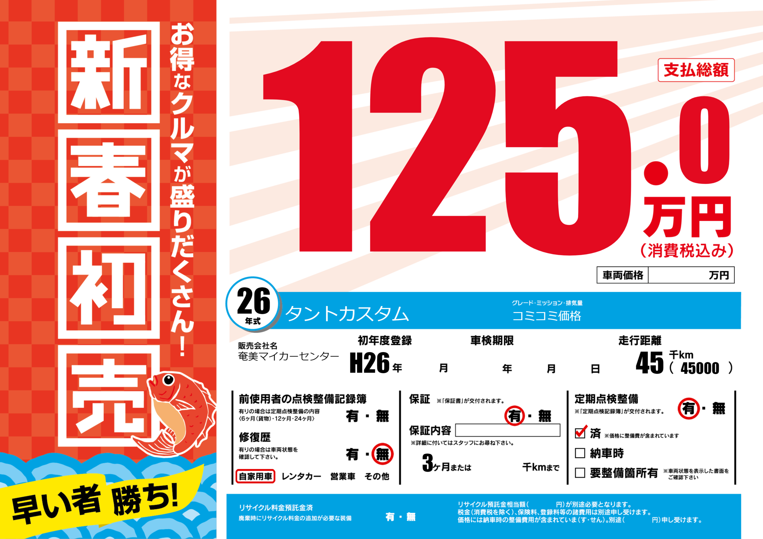 | 定期点検整備 | 定期点検整備あり 定期点検整備済み | ||