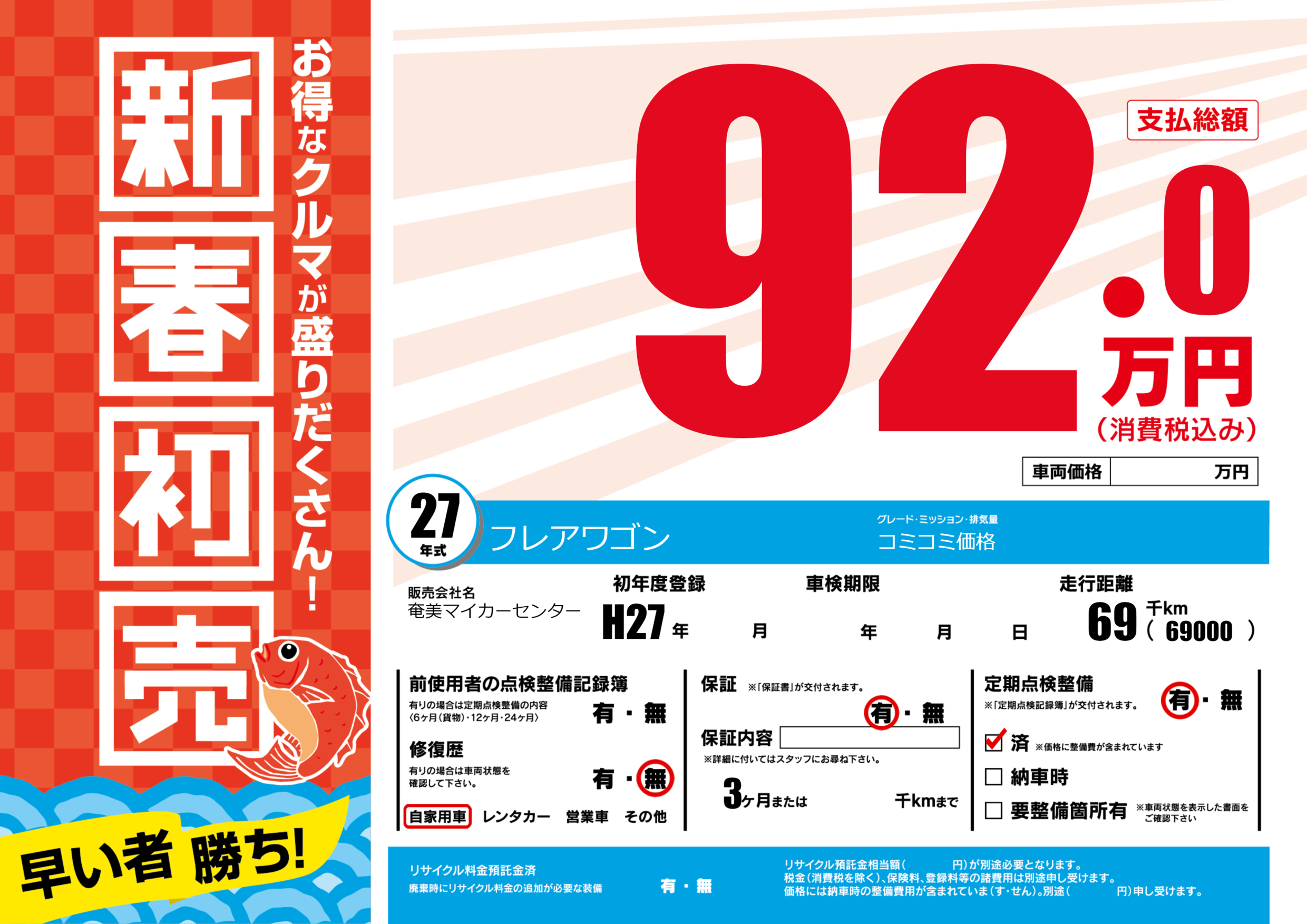 | 定期点検整備 | 定期点検整備あり 定期点検整備済み | ||