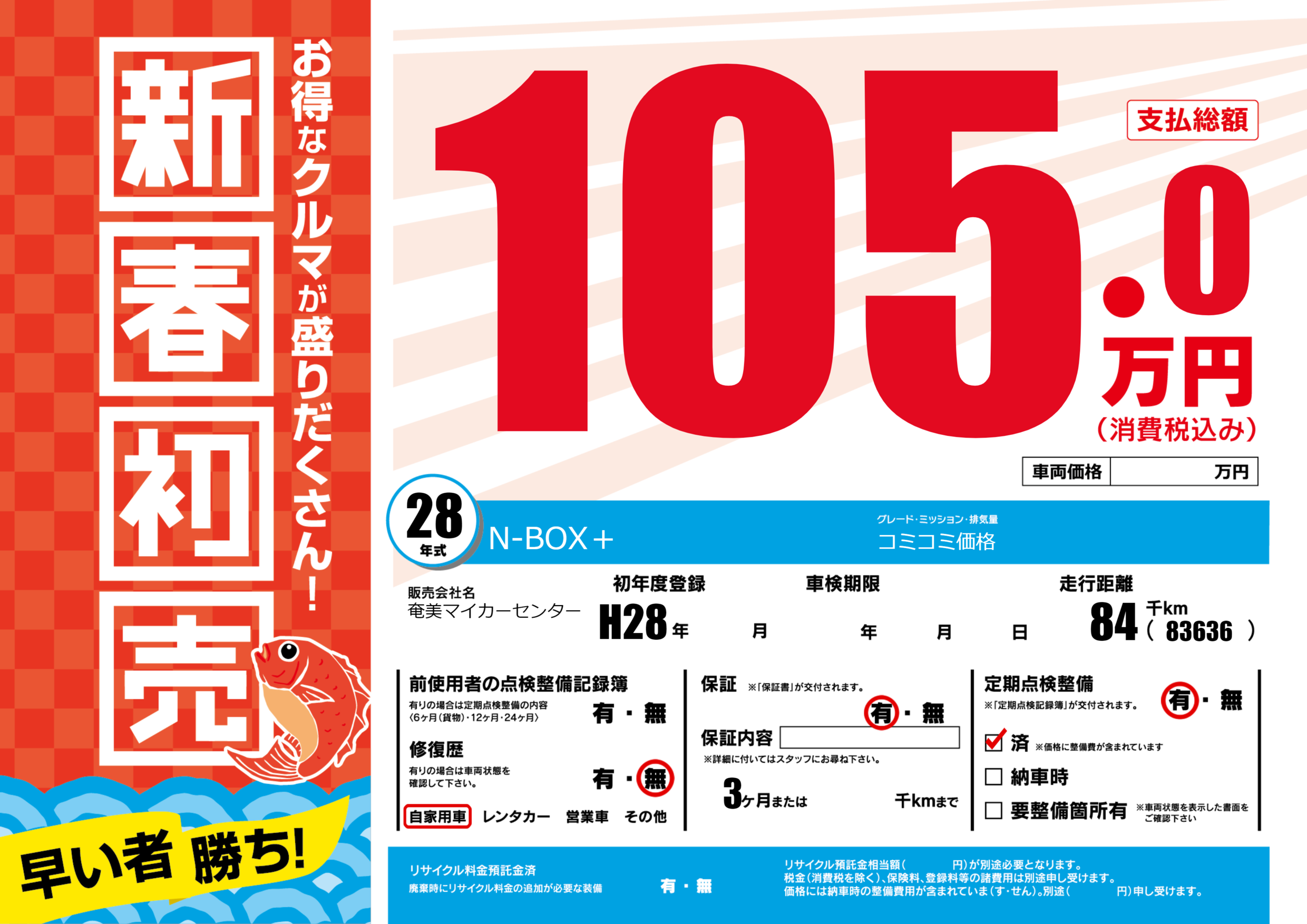 | 定期点検整備 | 定期点検整備あり 定期点検整備済み | ||