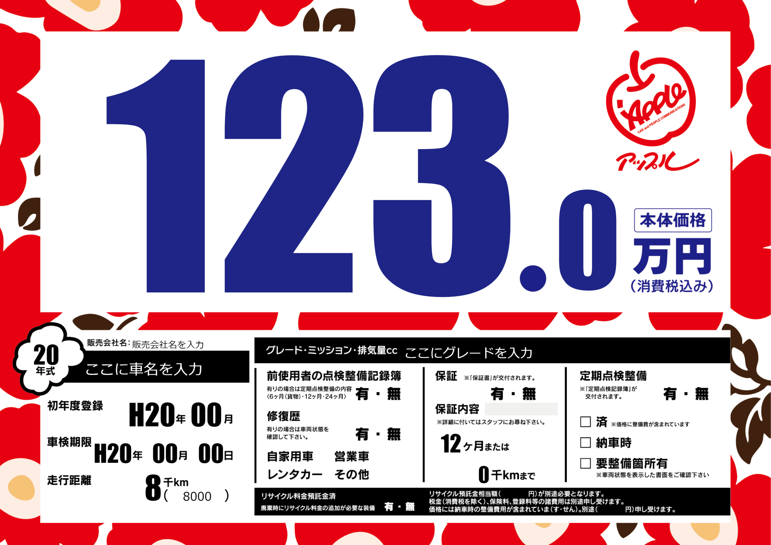 | 車名 | ここに車名を入力 | グレード ミッション 排気量 |