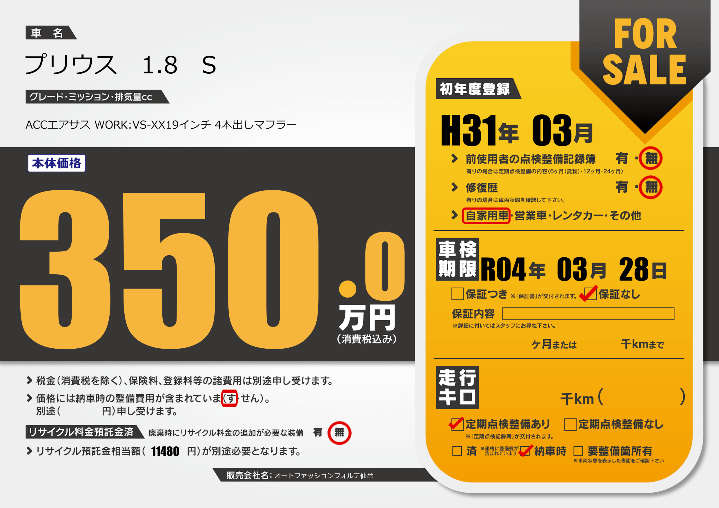 | 車検制限 | R04年 03月 28日 | ||