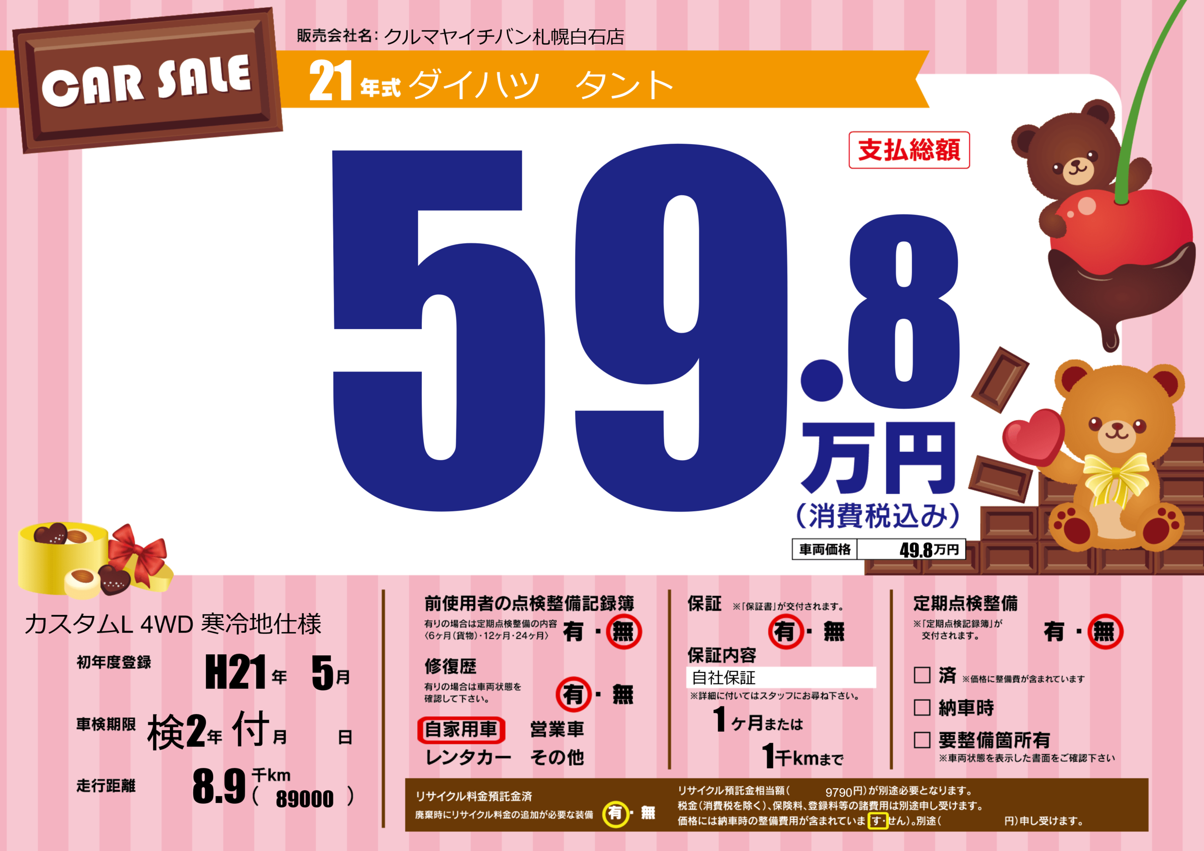 | 車検制限 | 検2年 付月 - 日 | ||