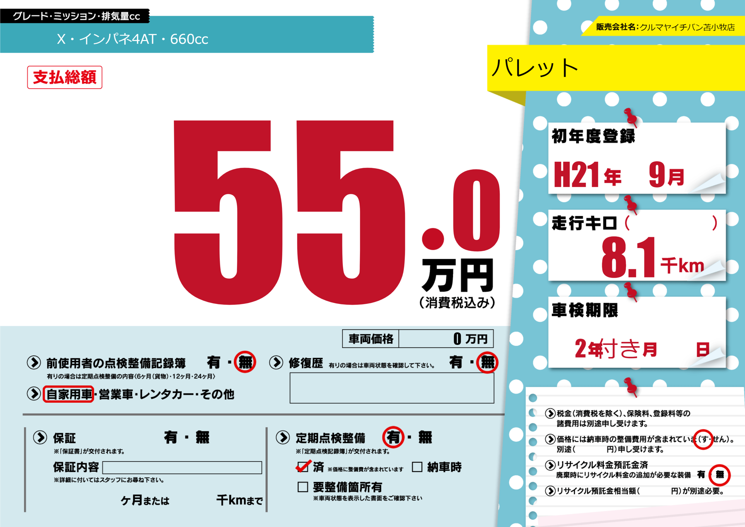 | 定期点検整備 | 定期点検整備あり 定期点検整備済み | ||