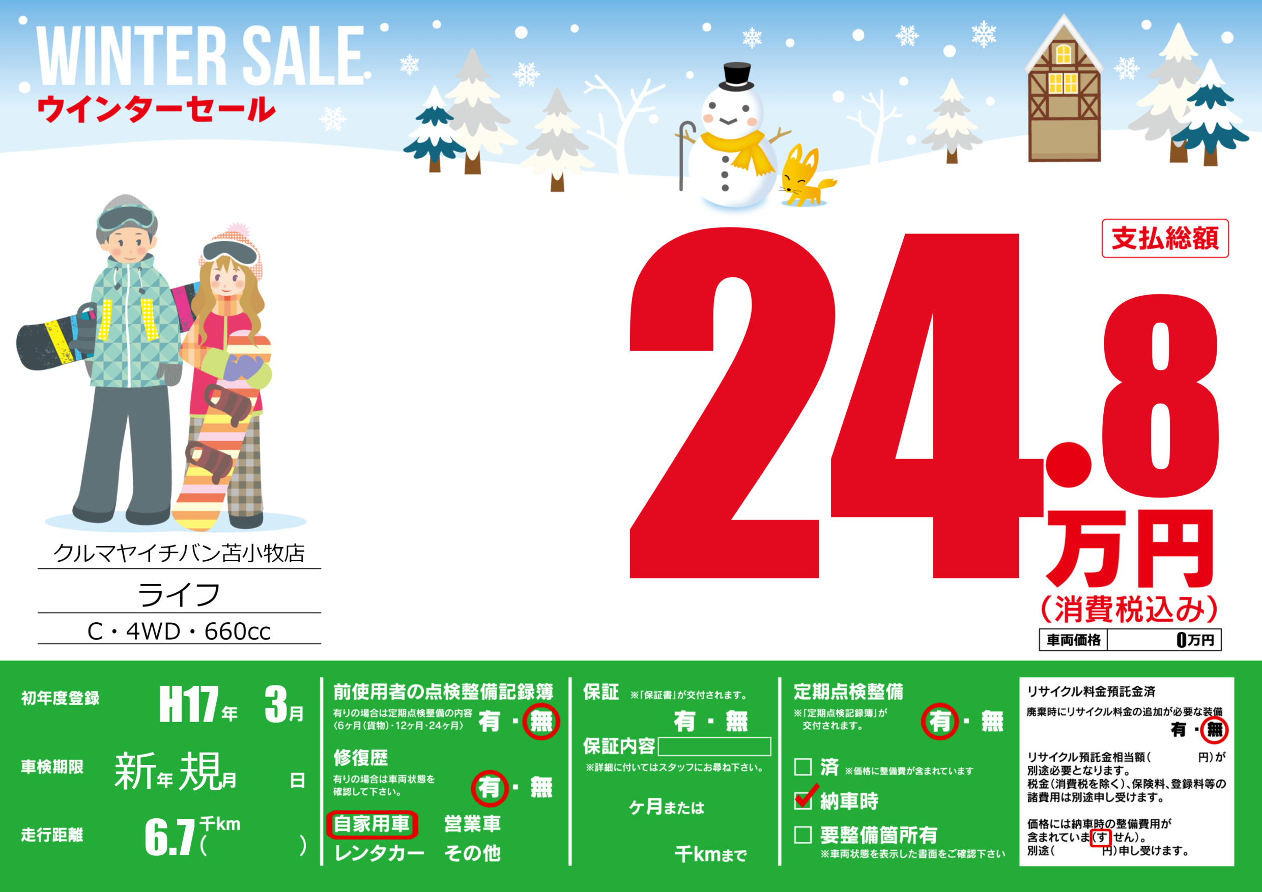 | 定期点検整備 | 定期点検整備あり 納車時あり | ||