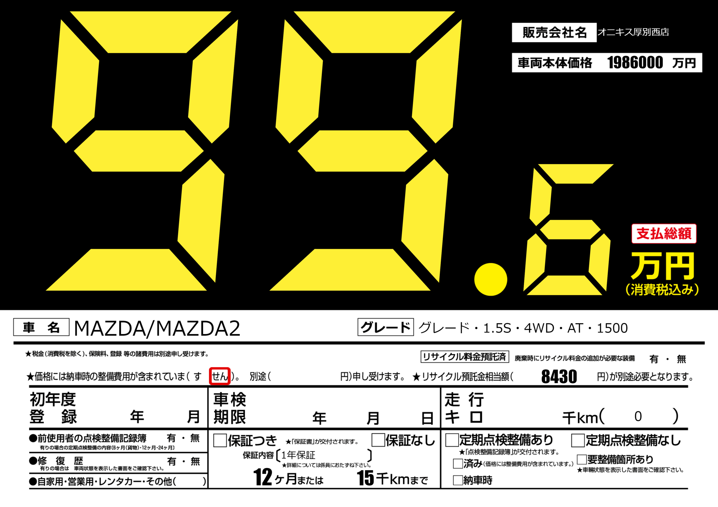 | 車名 | MAZDA/MAZDA2 | グレード ミッション 排気量 |
