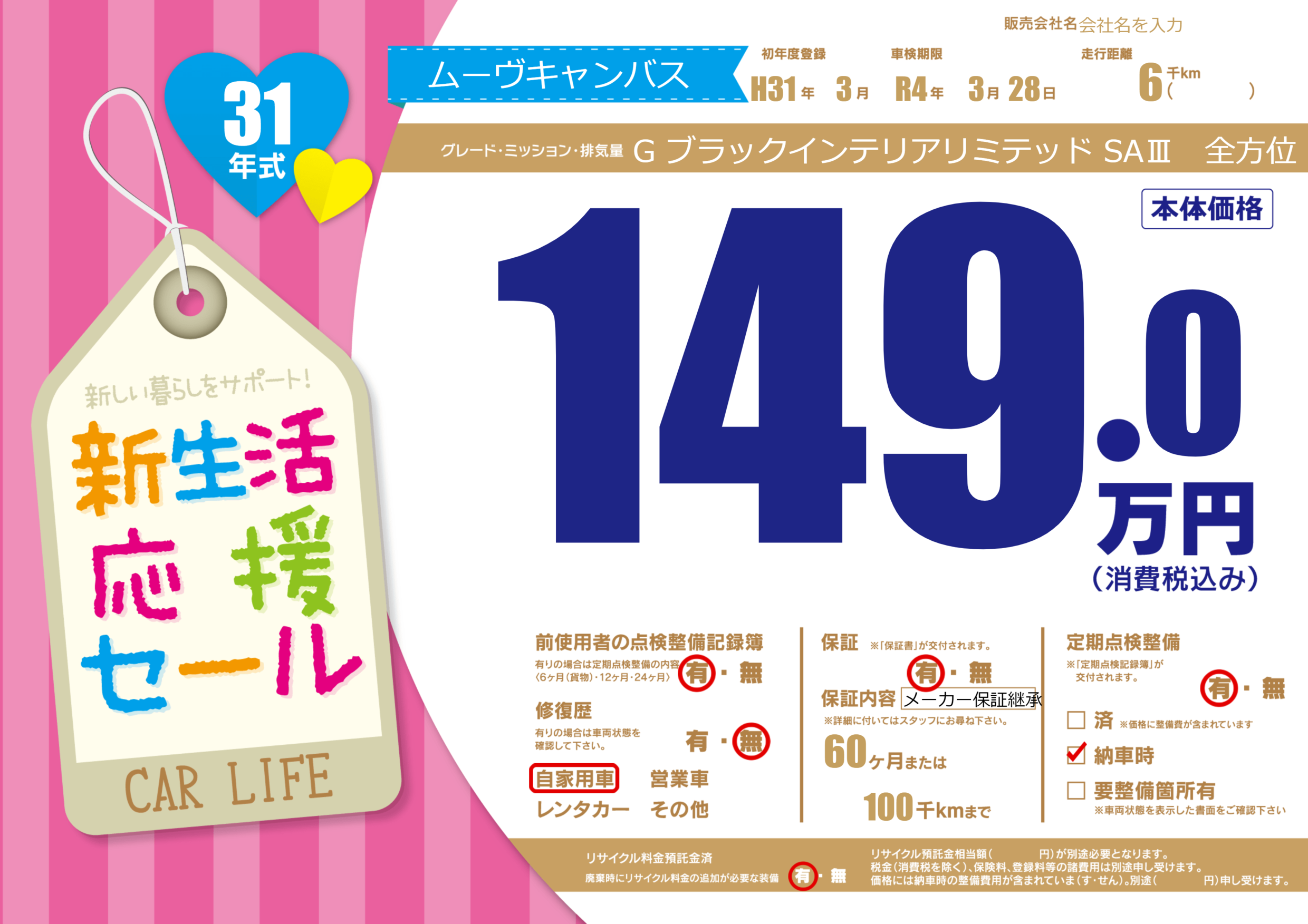 | 定期点検整備 | 定期点検整備あり 納車時あり | ||
