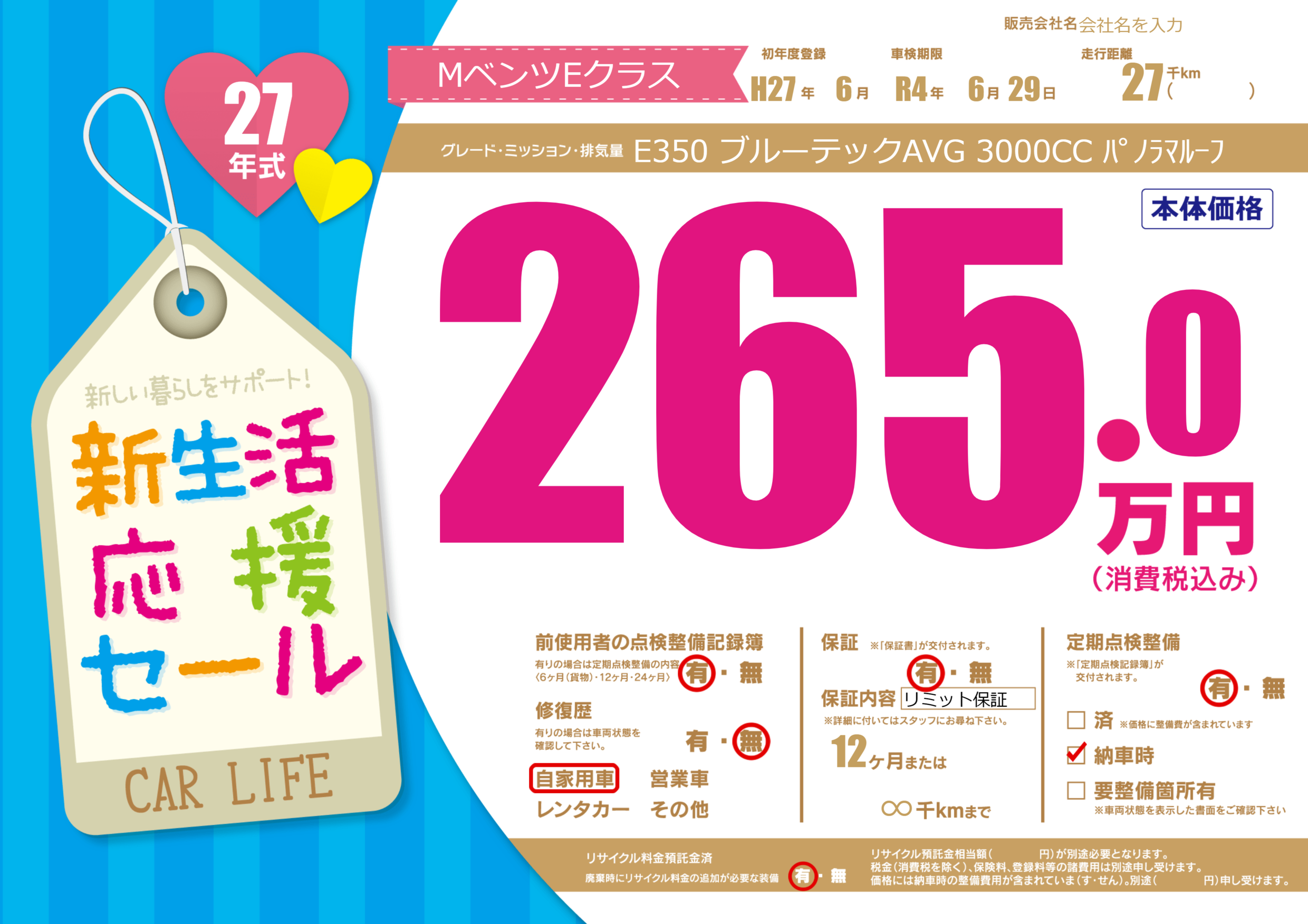 | 定期点検整備 | 定期点検整備あり 納車時あり | ||