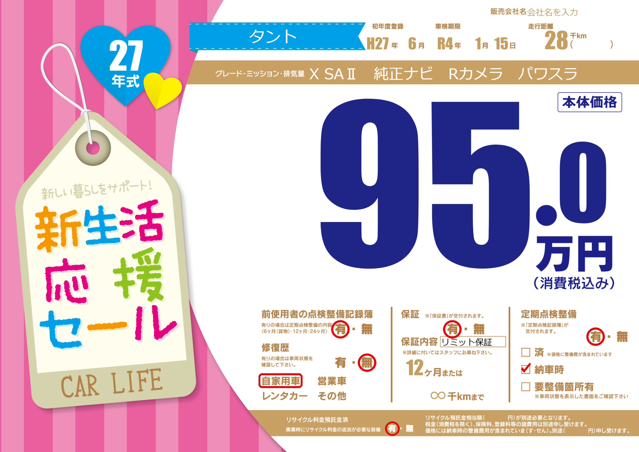 | 定期点検整備 | 定期点検整備あり 納車時あり | ||