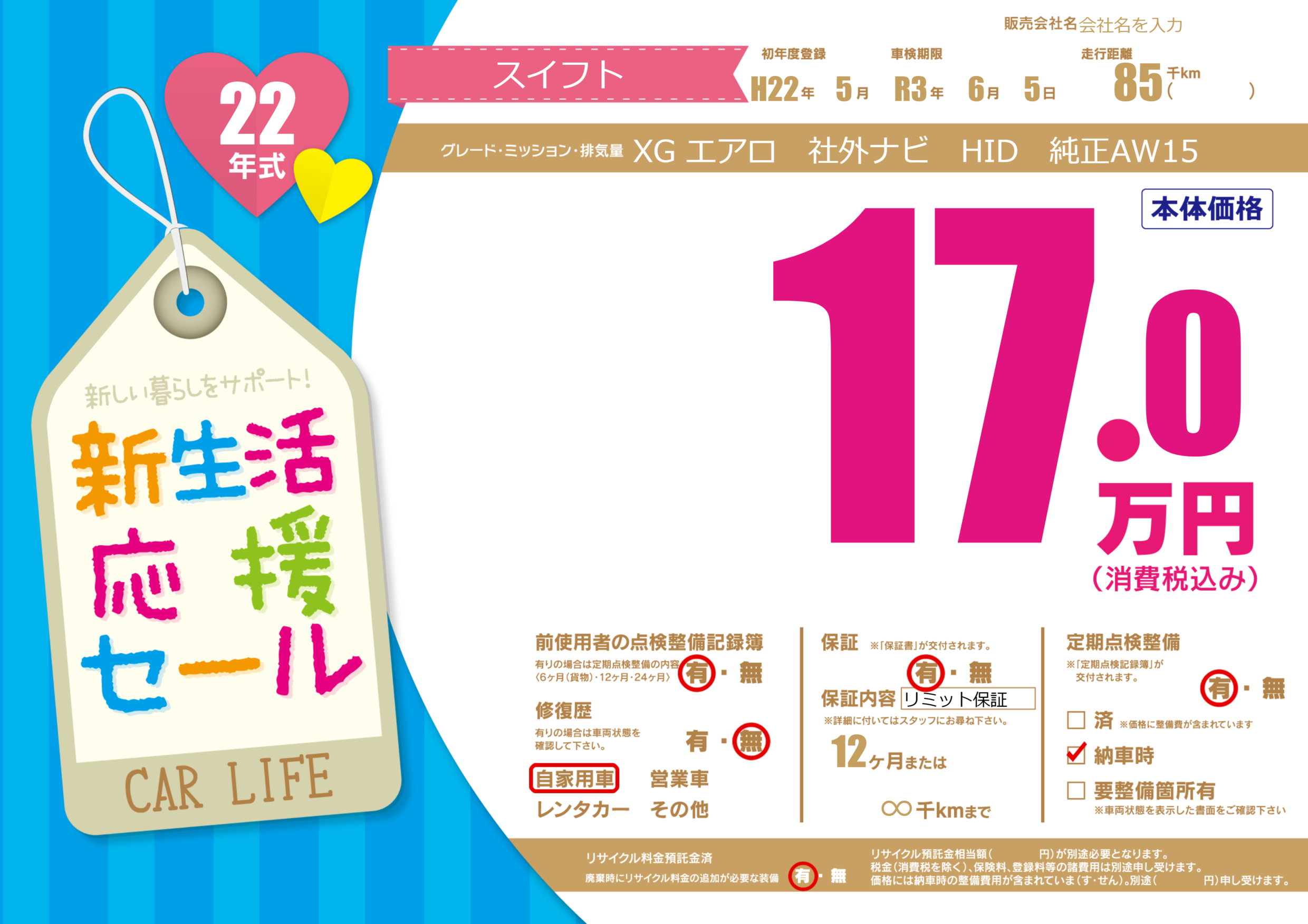 | 定期点検整備 | 定期点検整備あり 納車時あり | ||