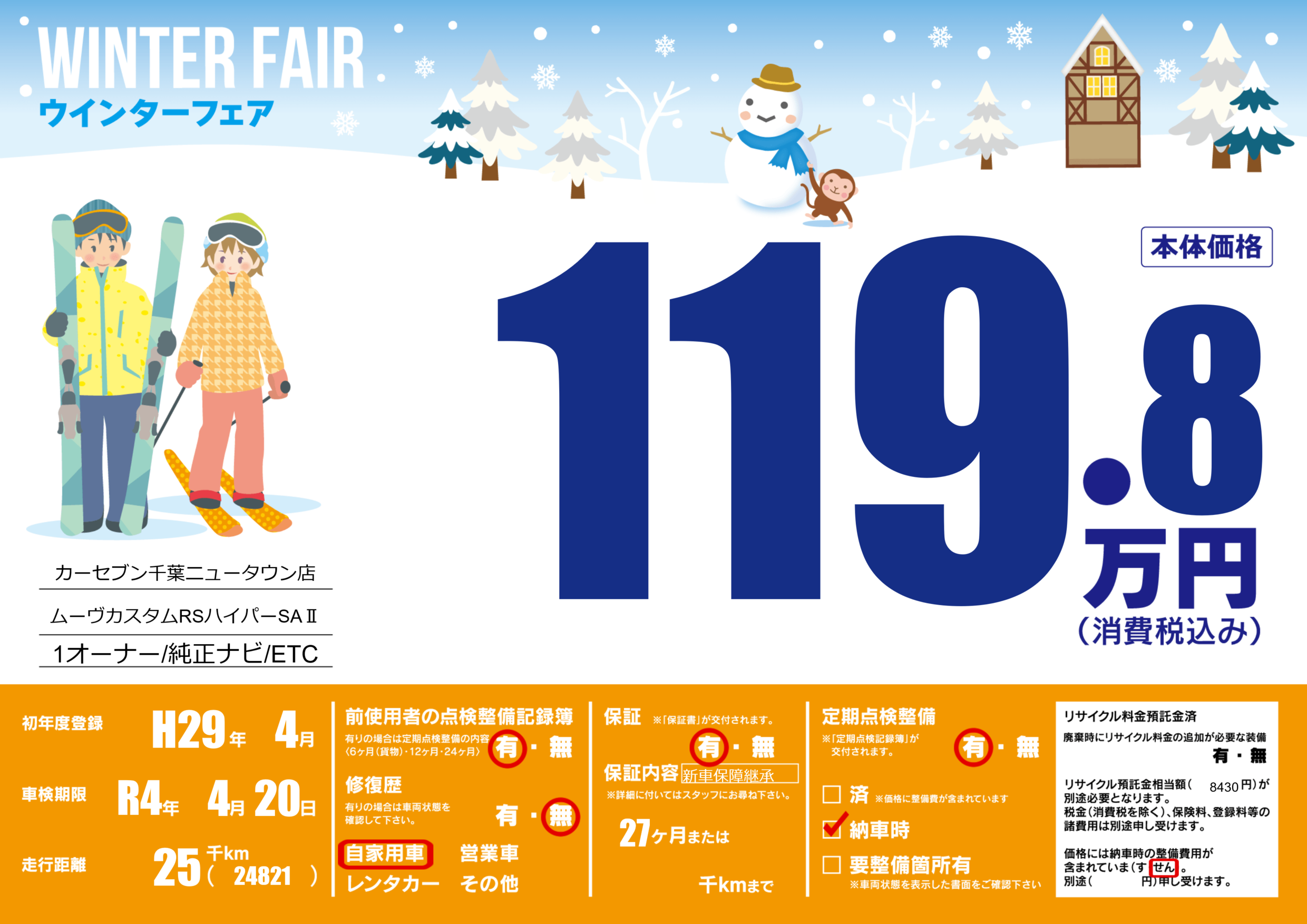 | 定期点検整備 | 定期点検整備あり 納車時あり | ||