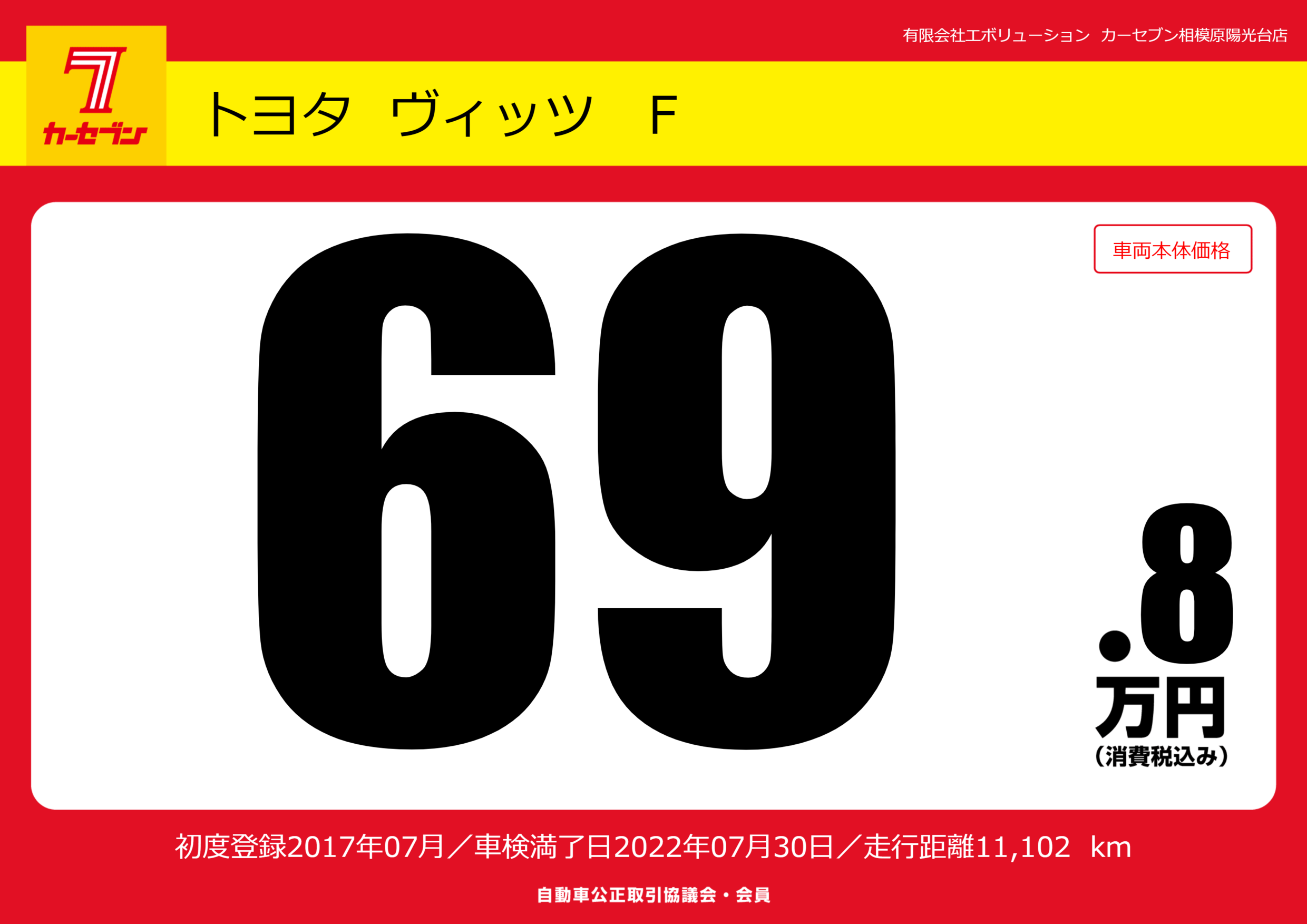 | 車名 | トヨタ ヴィッツ F | グレード ミッション 排気量 |